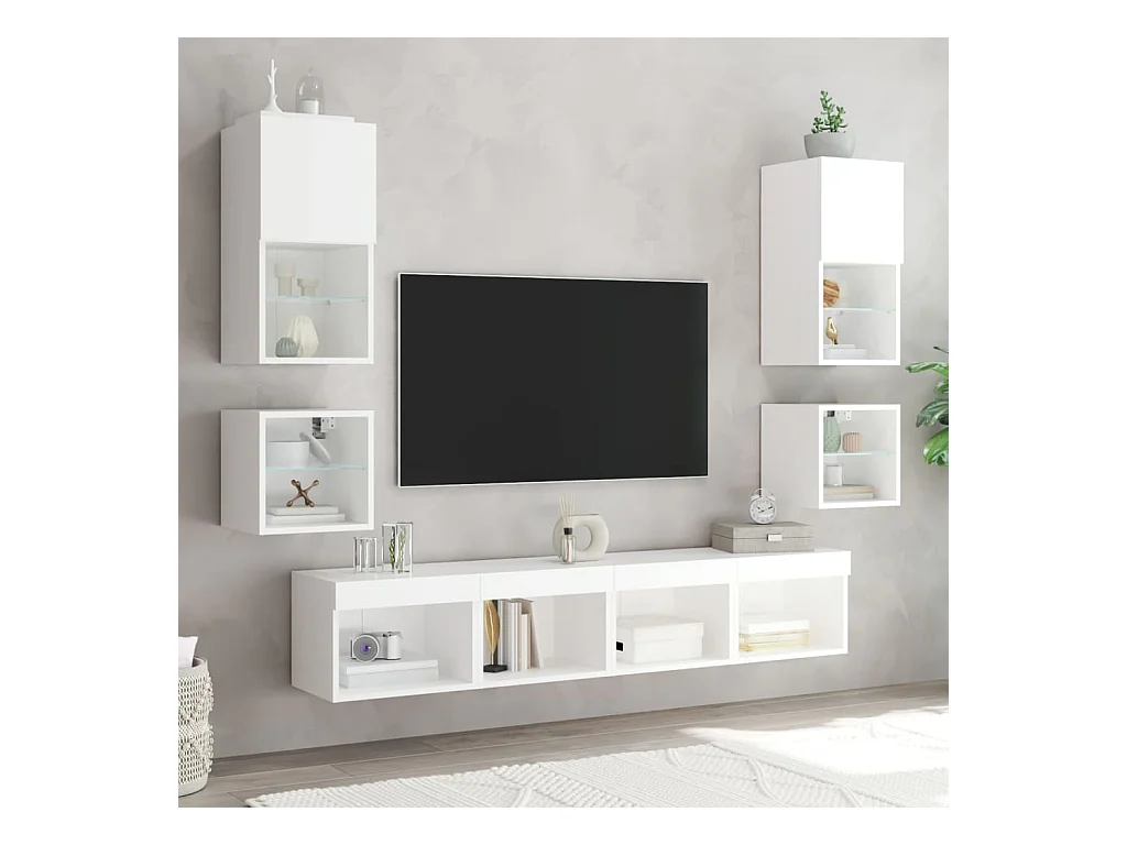 Muebles de pared para TV con LED, 5 piezas, madera de ingeniería blanca