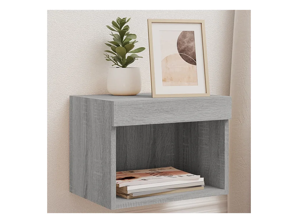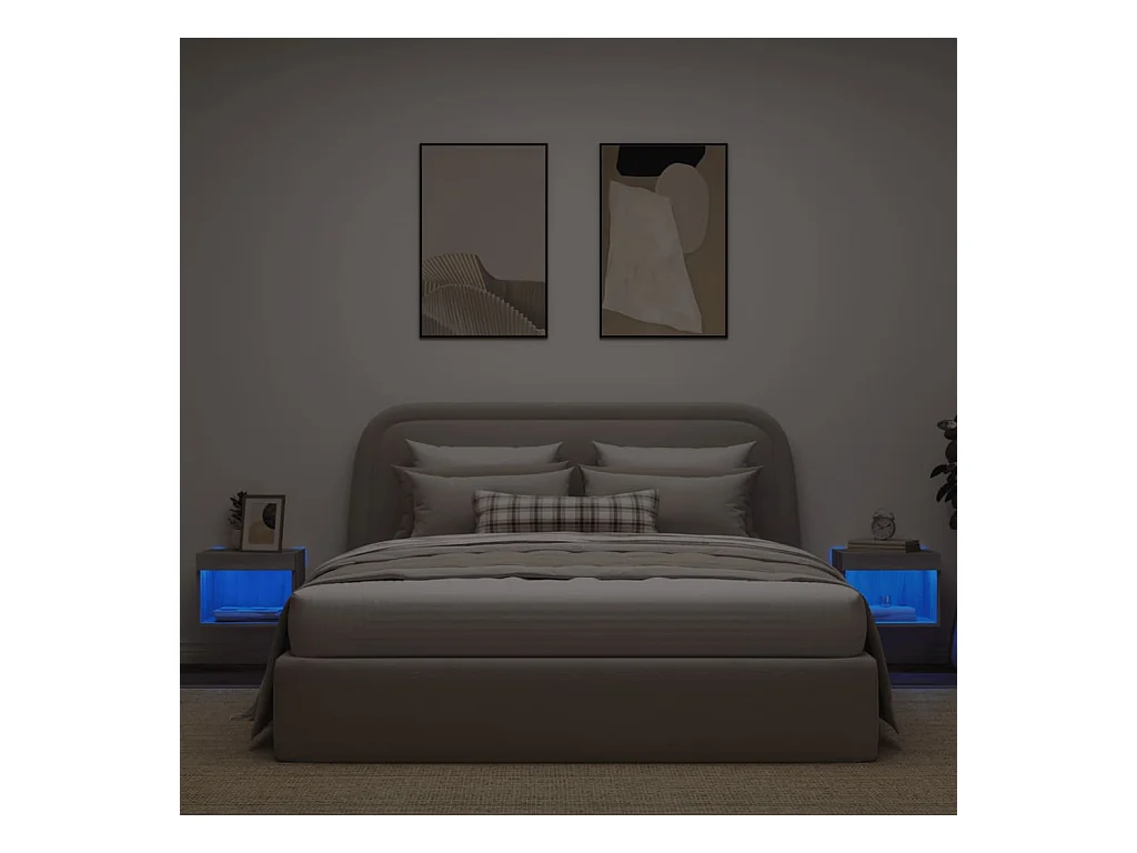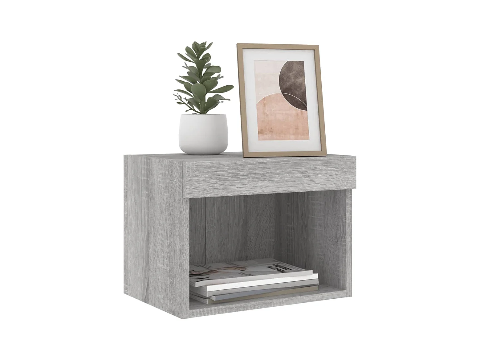 Mesitas de noche de pared con luces LED 2 piezas gris sonoma