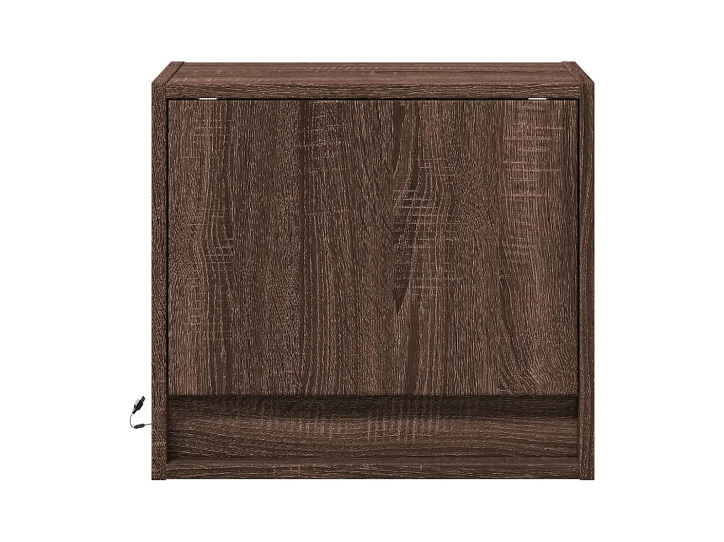 Mesitas de noche de pared con luces LED 2 piezas roble marrón