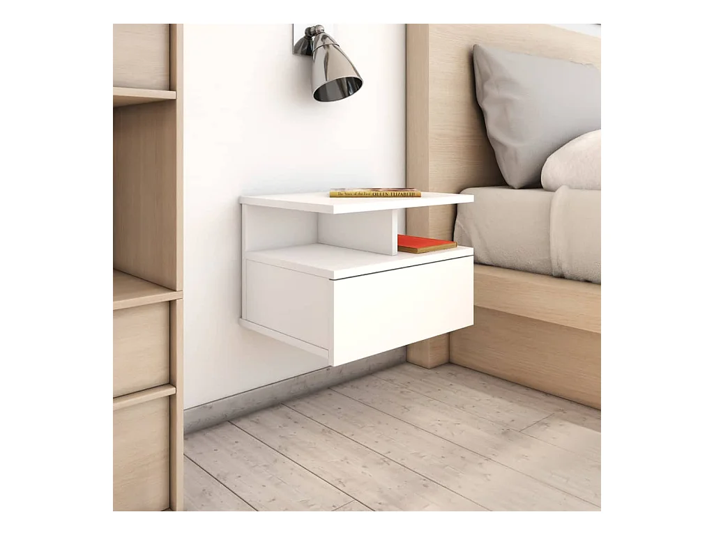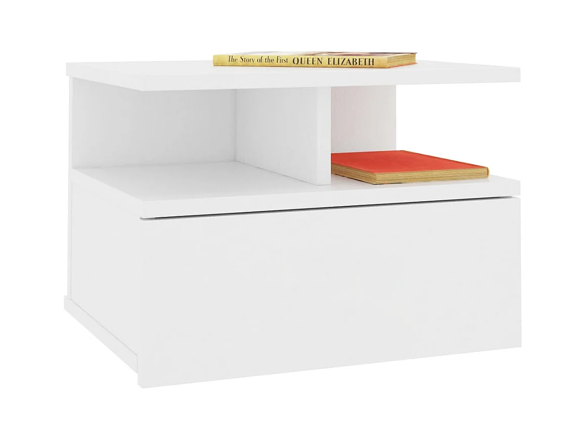 Mesitas de noche flotantes 2 uds Aglomerado Blanco 40x31x27 cm