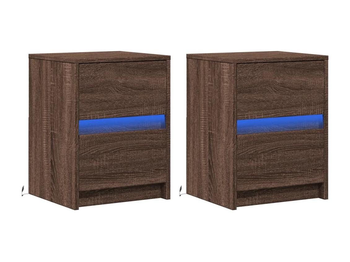 Mesillas de noche con luces LED 2 unidades roble marrón 38x34x50 cm