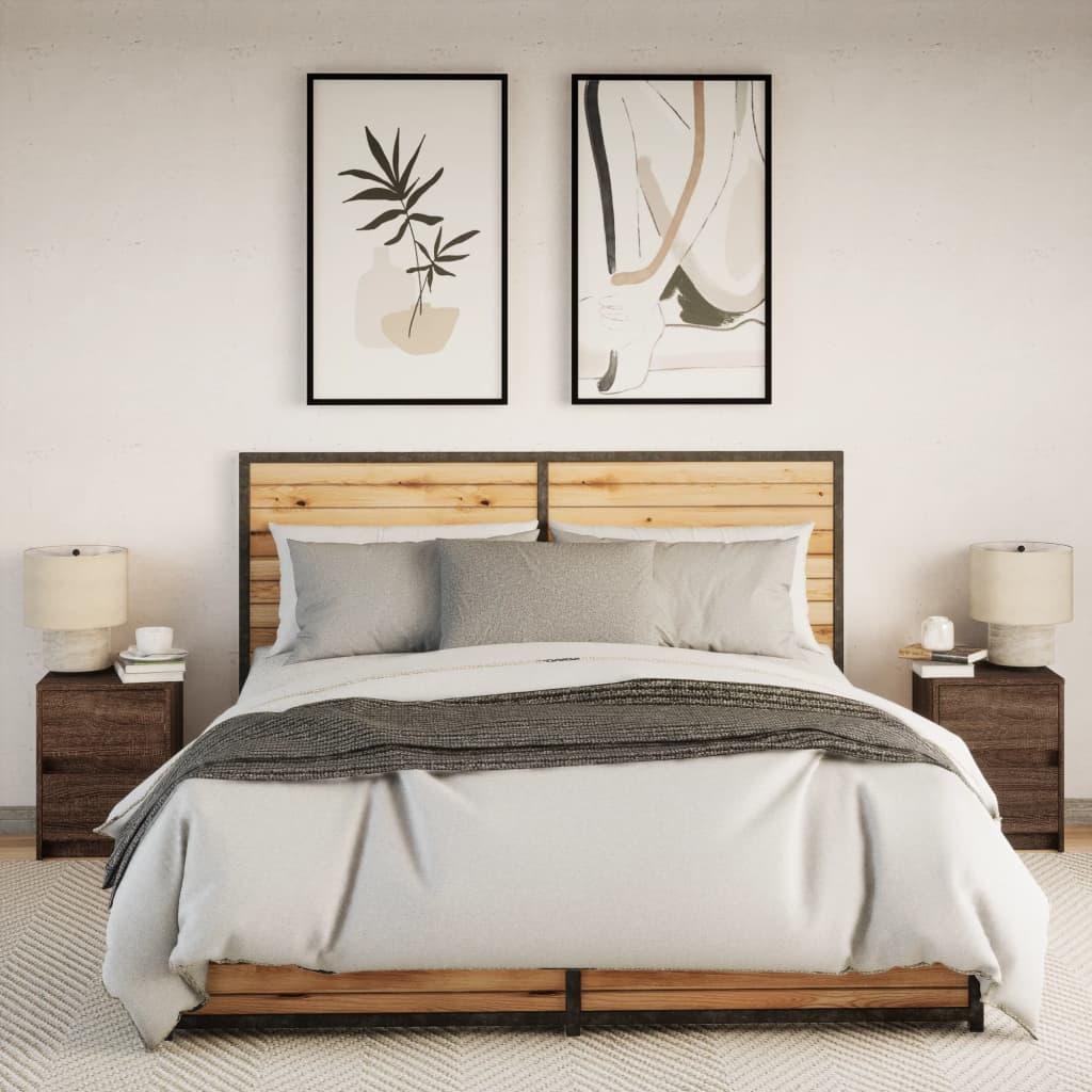 Mesitas de noche luces LED 2 unidades madera ingeniería roble marrón