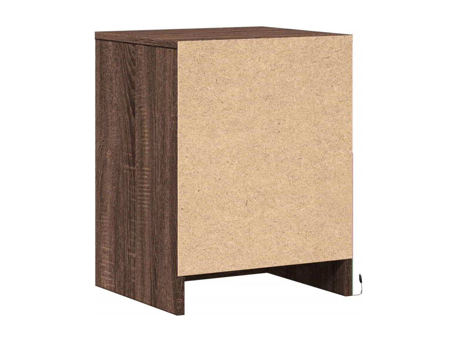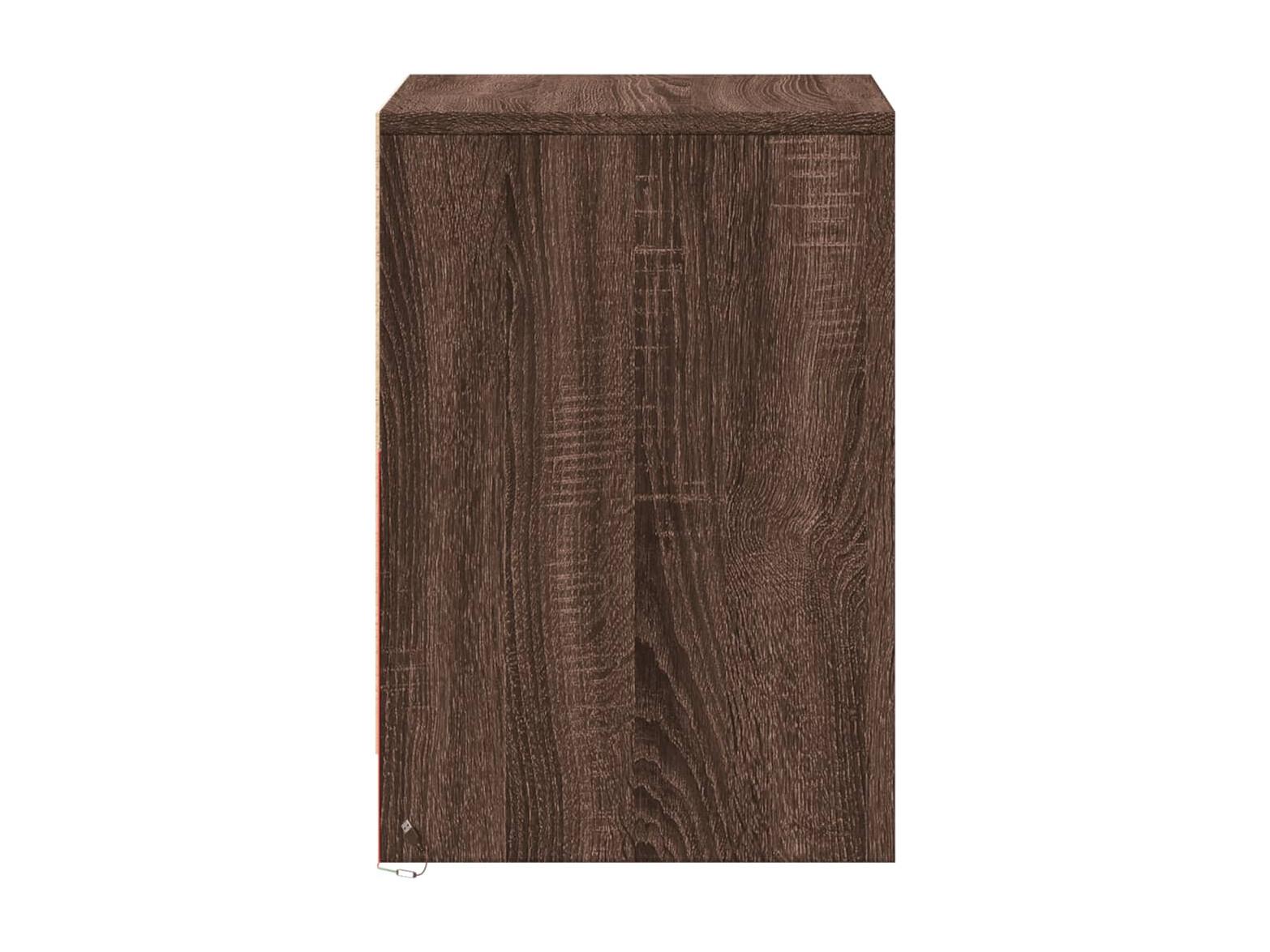 Mesita de noche con luces LED madera de ingeniería roble marrón