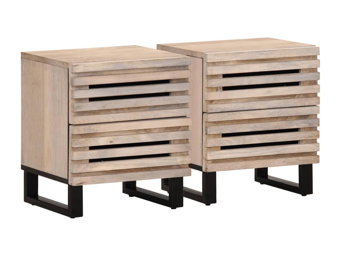 Mesitas de noche madera maciza mango blanqueado 40x33x46 cm