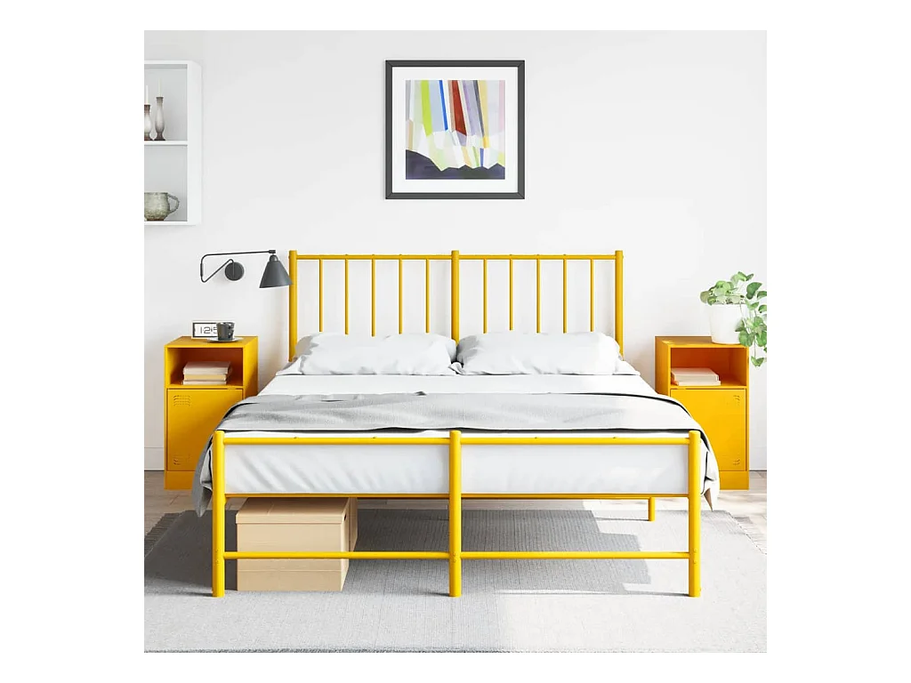 Mesitas de noche | Mesilla de noche 2 uds acero amarillo mostaza 36x39x60,5 cm
