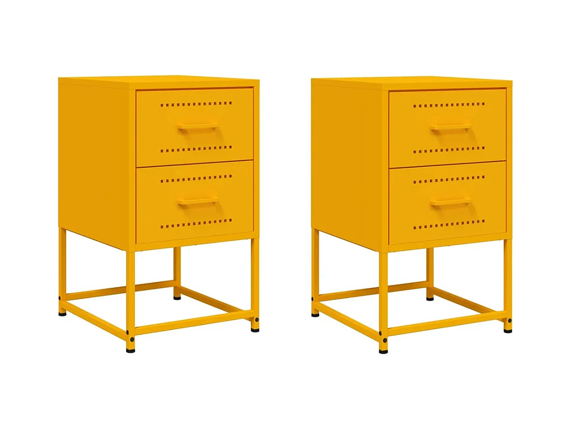Mesitas de noche | Mesilla de noche 2 uds acero amarillo mostaza 36x39x43,5 cm
