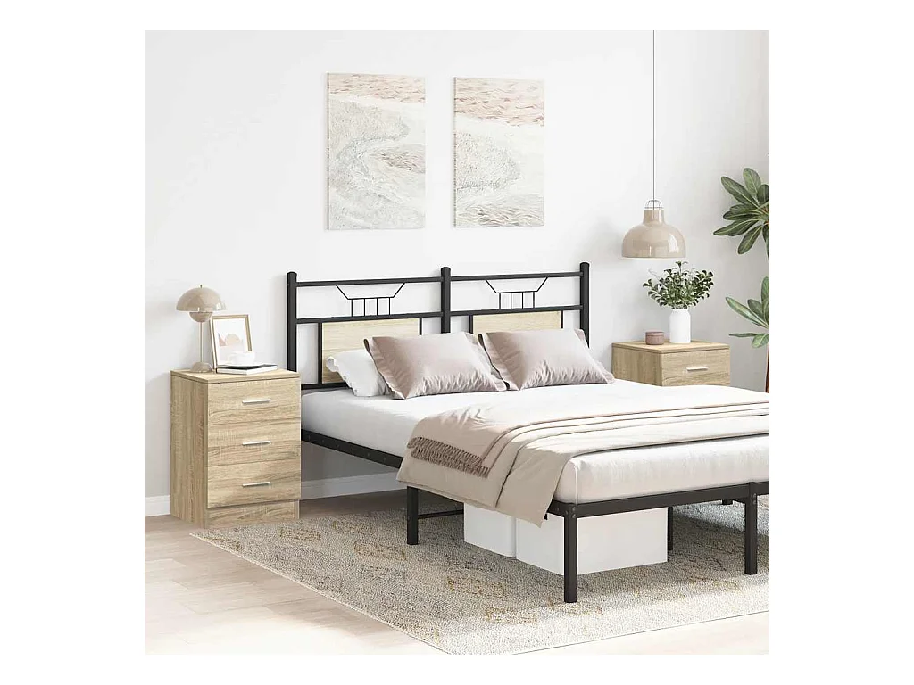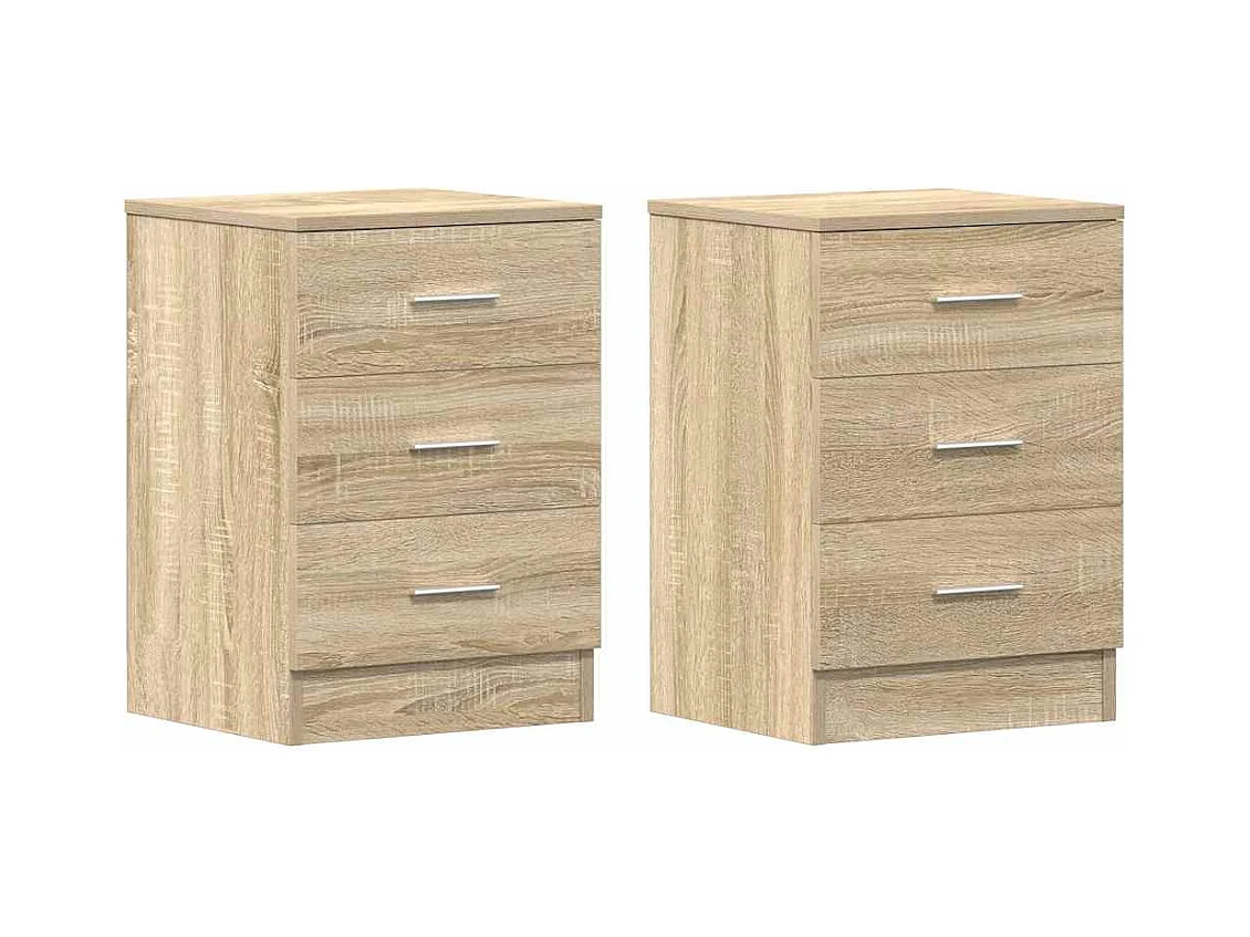 Pack 2 uds Mesilla de noche | Mesitas de noche con 3 cajones roble Sonoma 39x35x65 cm