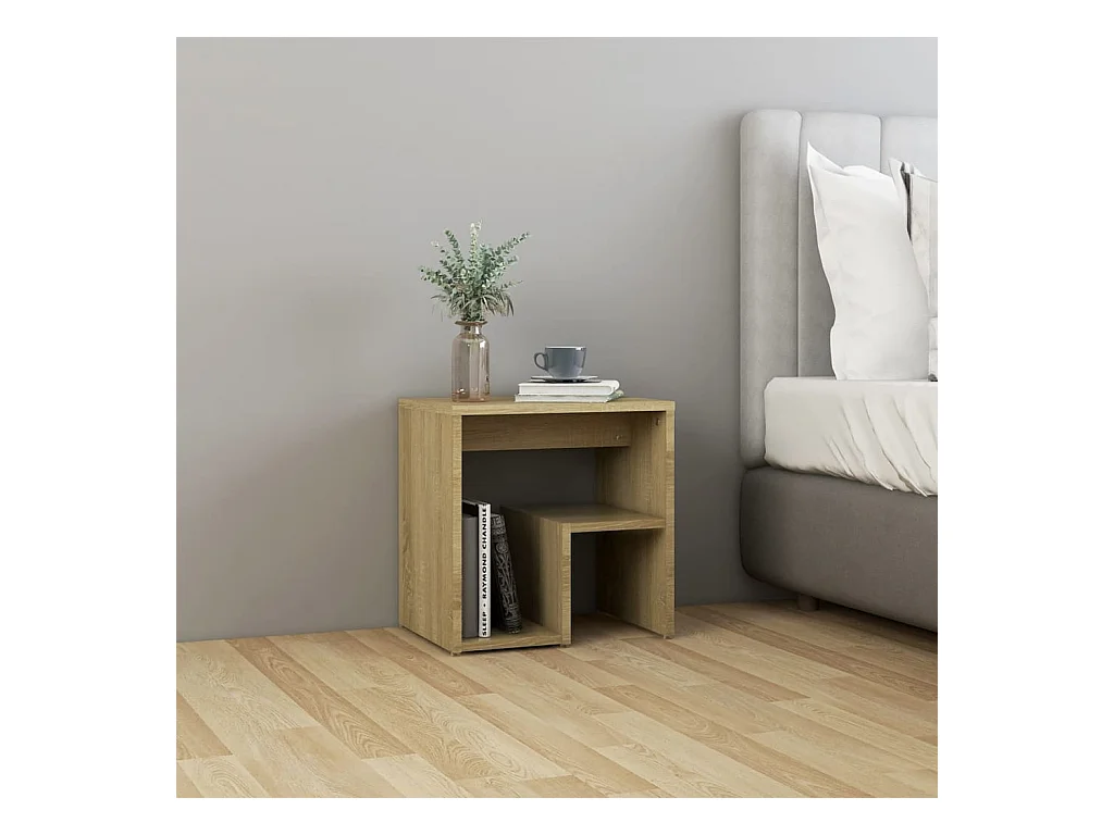 Mesitas de noche | Mesilla de noche 2 uds contrachapada color roble 40x30x30 cm