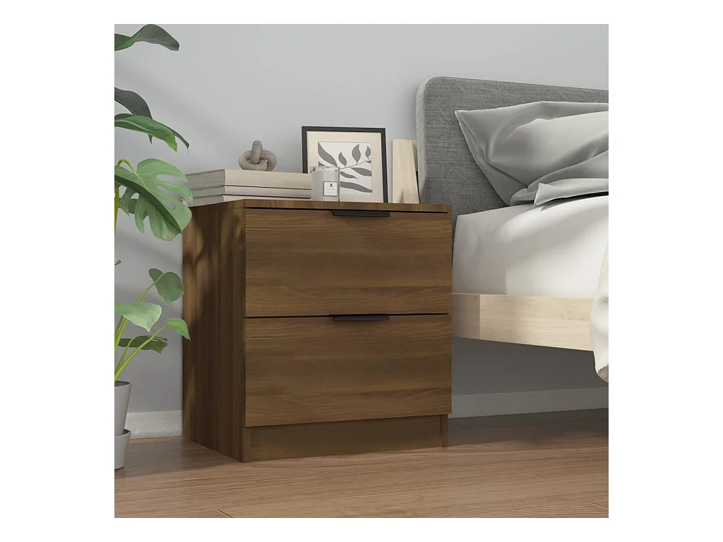 Mesitas de noche | Mesilla de noche 2 uds madera contrachapada color roble ahumado