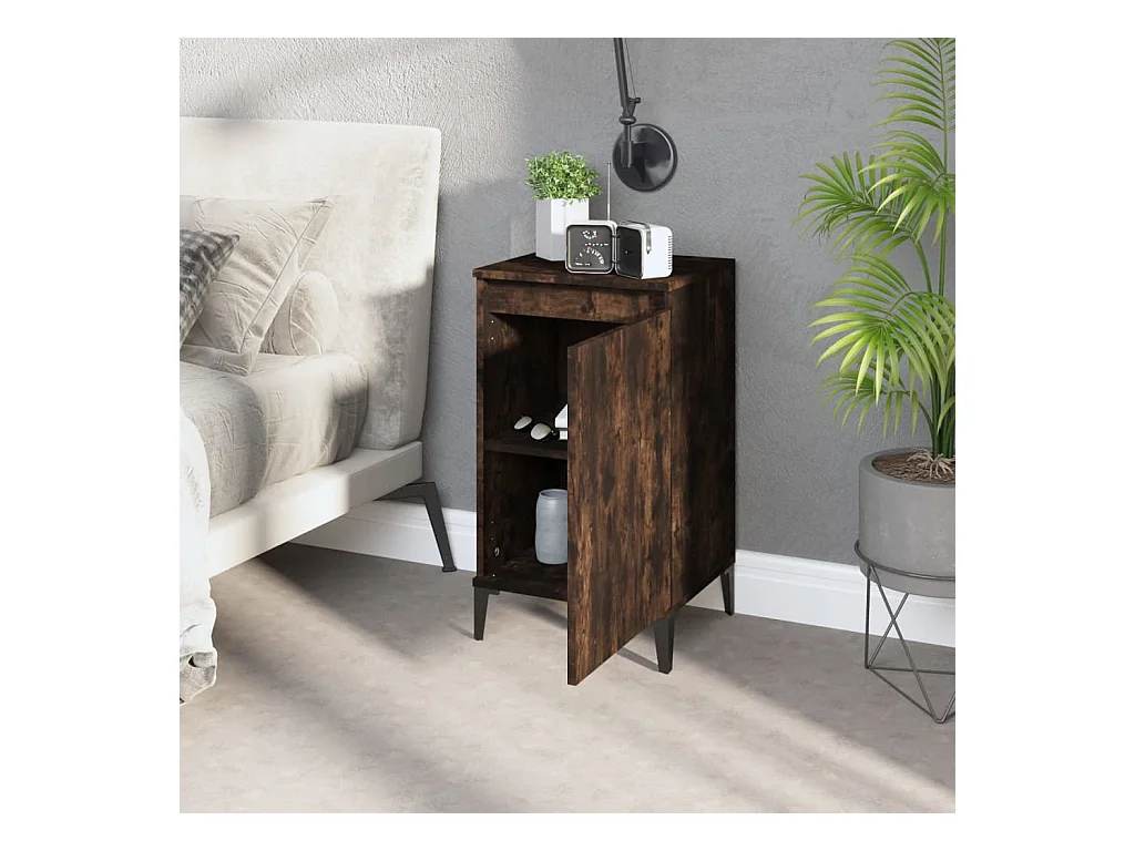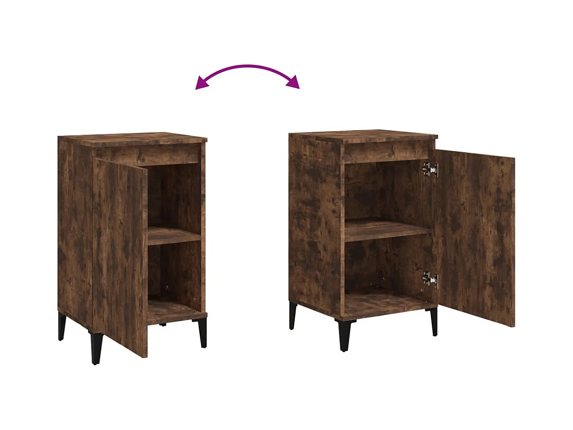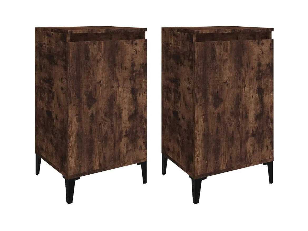 Mesita de noche | Mesilla de noche 2 uds. patas de metal roble ahumado 40x35x50 cm