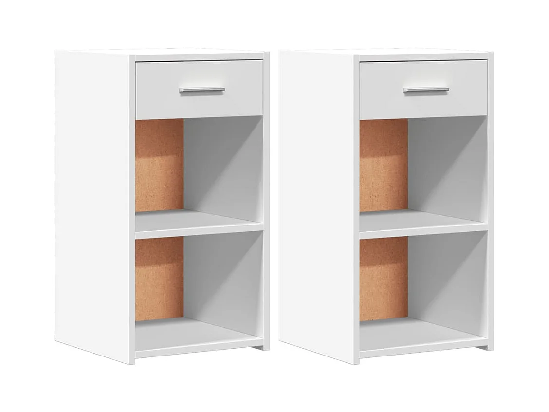 Pack 2 uds Mesilla de noche | Mesitas de noche con 2 cajones Blanco 38x34x80 cm