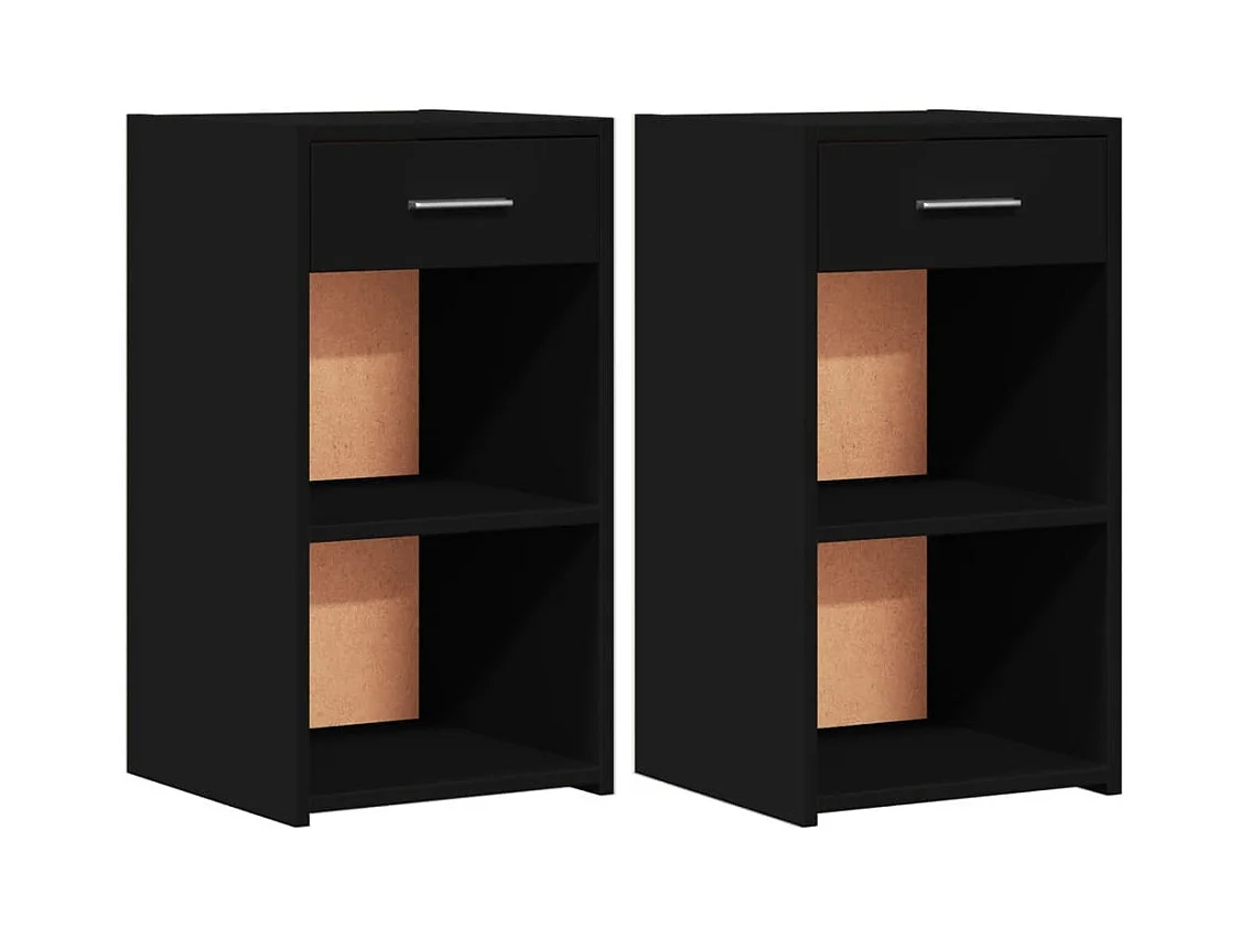 Pack 2 uds Mesilla de noche | Mesitas de noche con 2 cajones Negro 38x34x80 cm