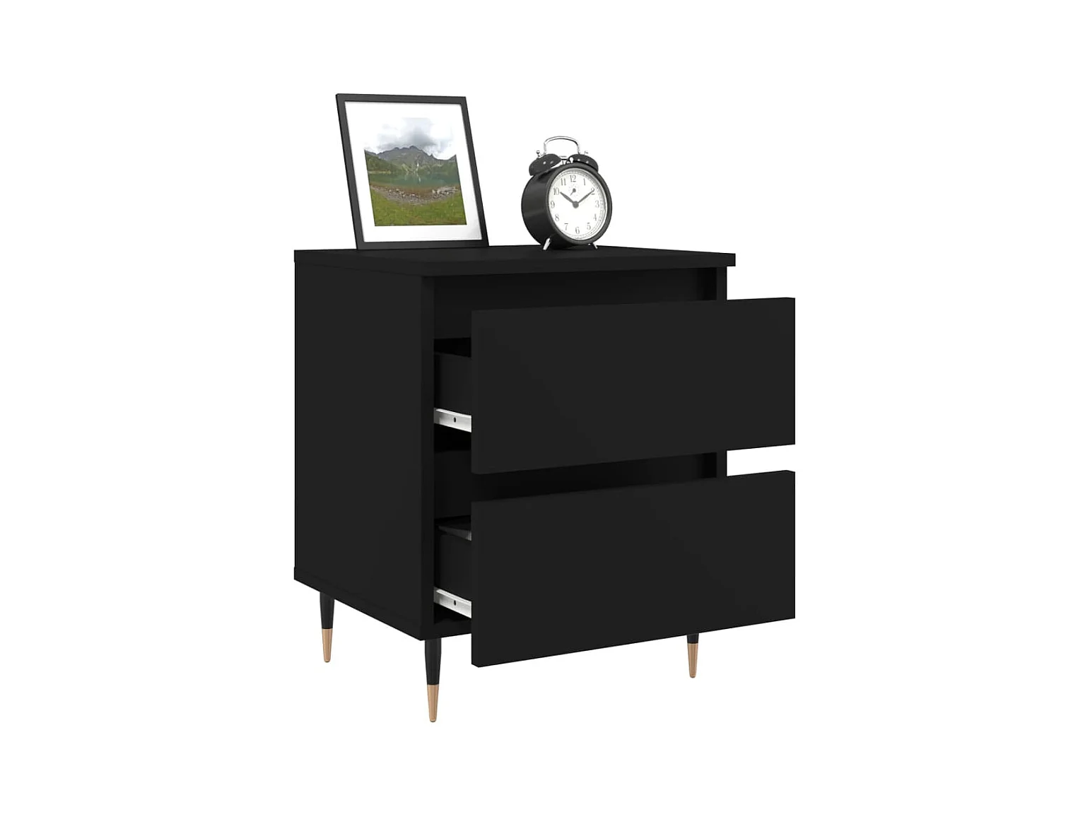 Mesita de Noche | Armario de Noche 2 uds con cajón Negro 50x34.5x50 cm.