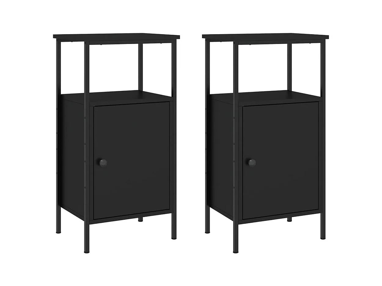 Pack 2 uds Mesilla de noche | Mesitas de noche con 2 cajones Negro 38x34x80 cm