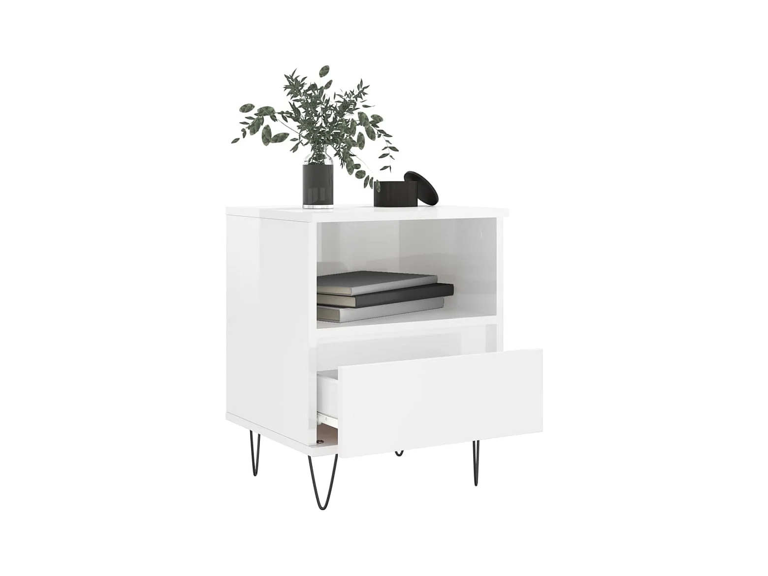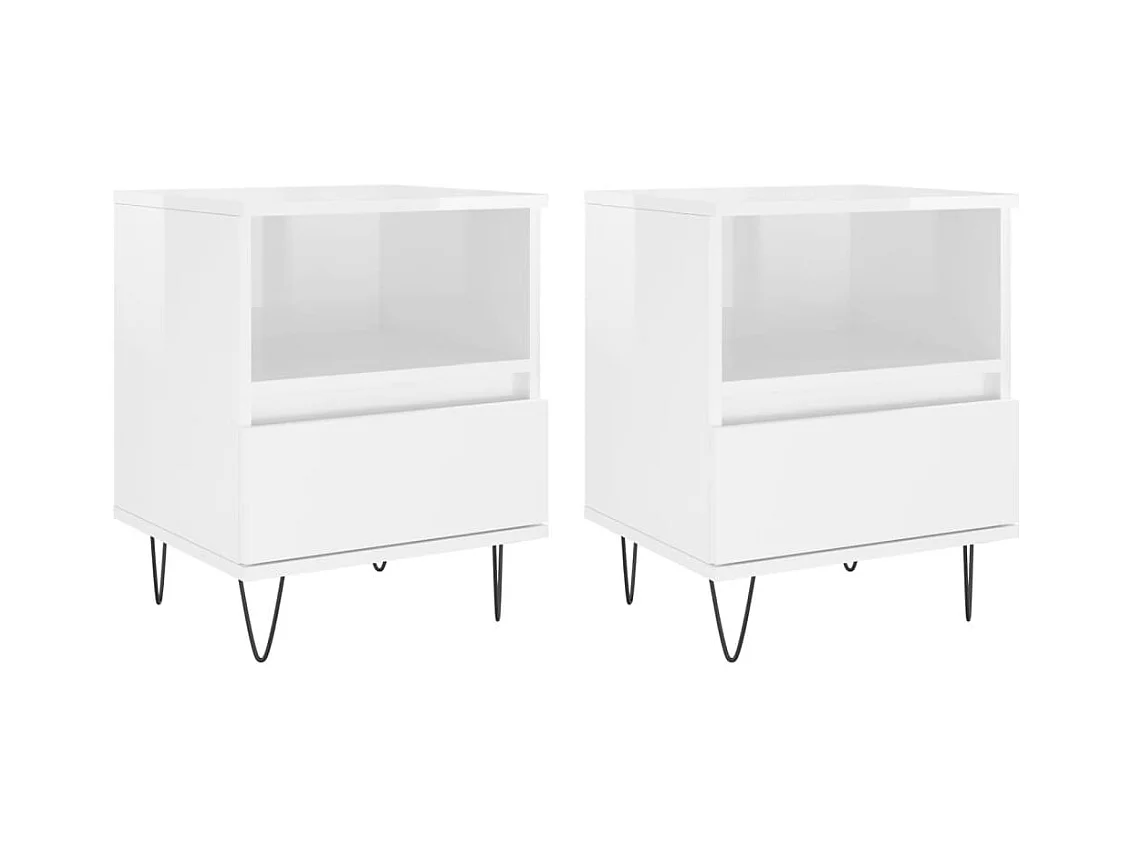 Mesita de noche | Mesilla de noche 2 uds madera ingeniería blanco brillo 40x35x47,5cm
