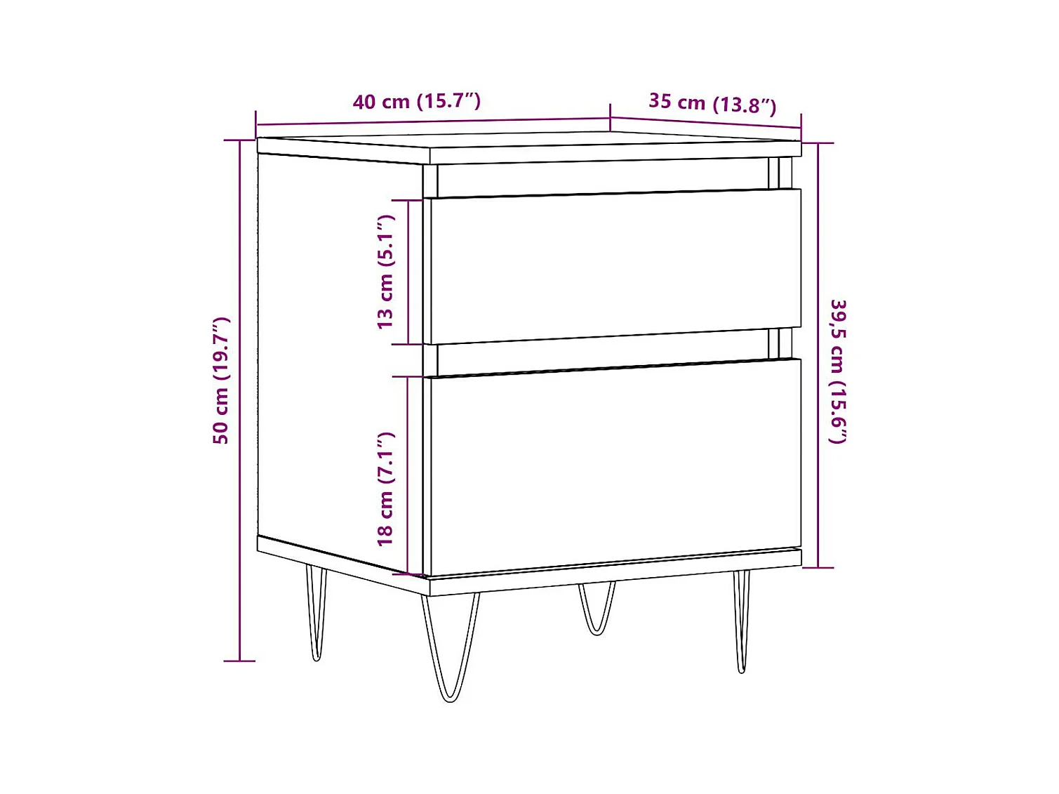 Mesita de noche | Mesilla de noche 2 uds. patas de metal roble ahumado 40x35x50 cm
