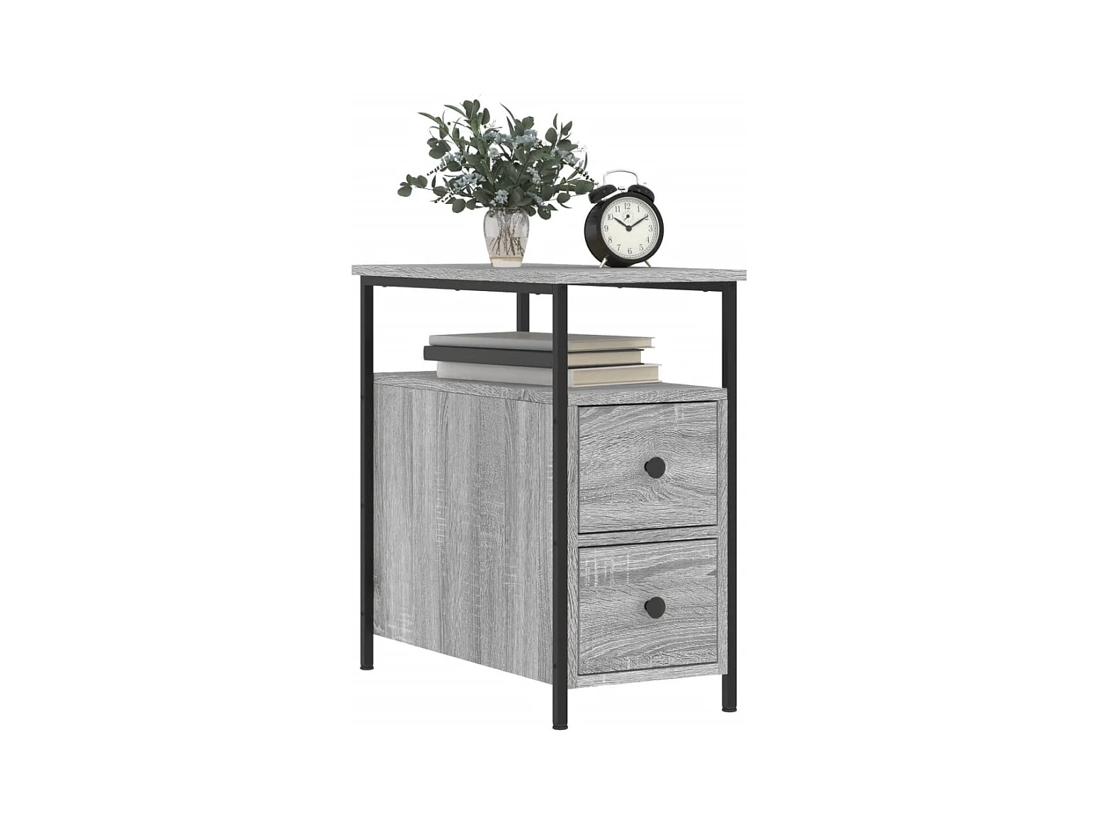 Mesa de Noche | Mesa auxiliar con cajón 2 uds. Gris sonoma 30x48x61 cm
