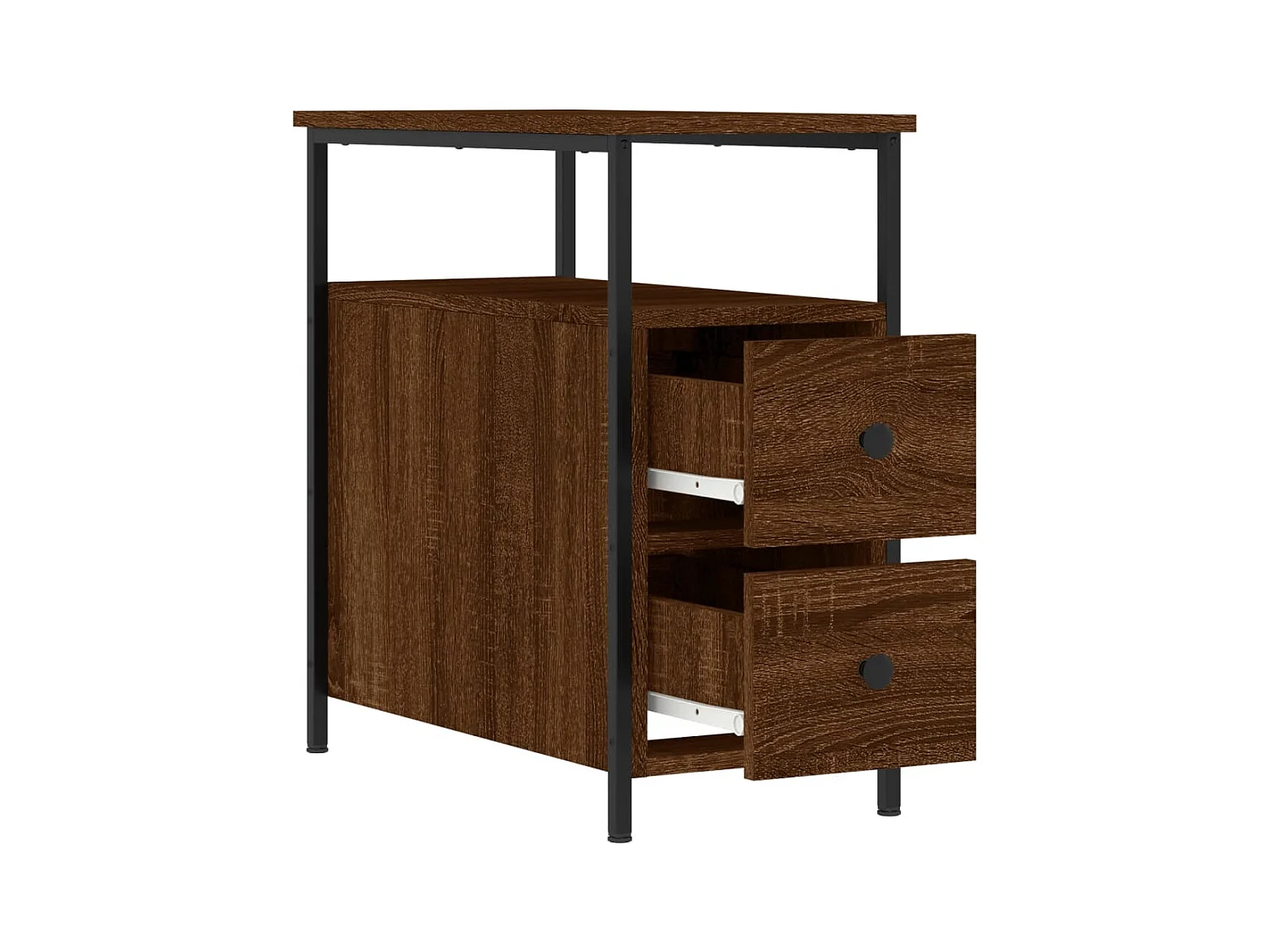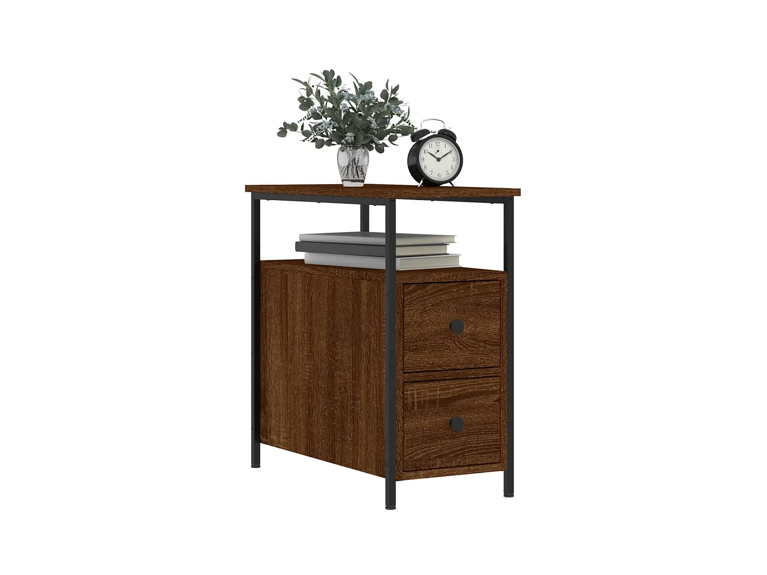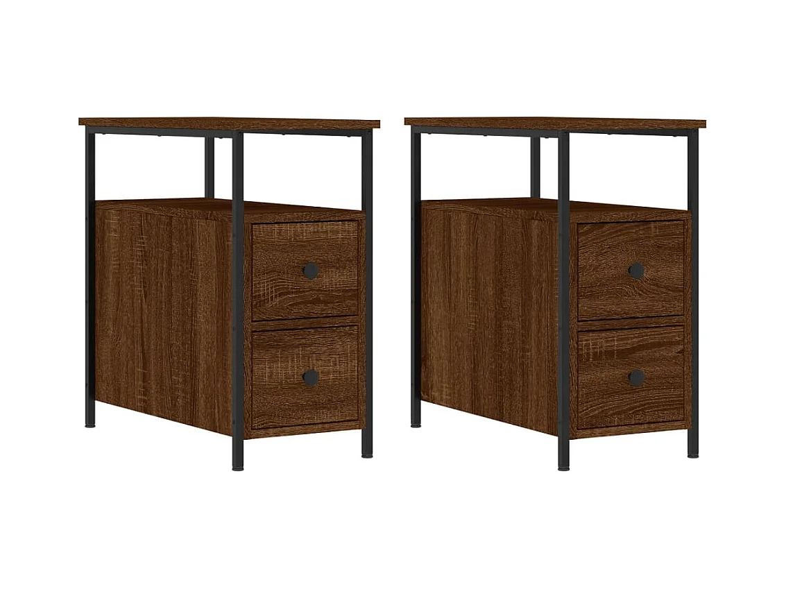 Mesa de Noche | Mesa auxiliar con cajón 2 uds. Marrón roble 30x48x61 cm