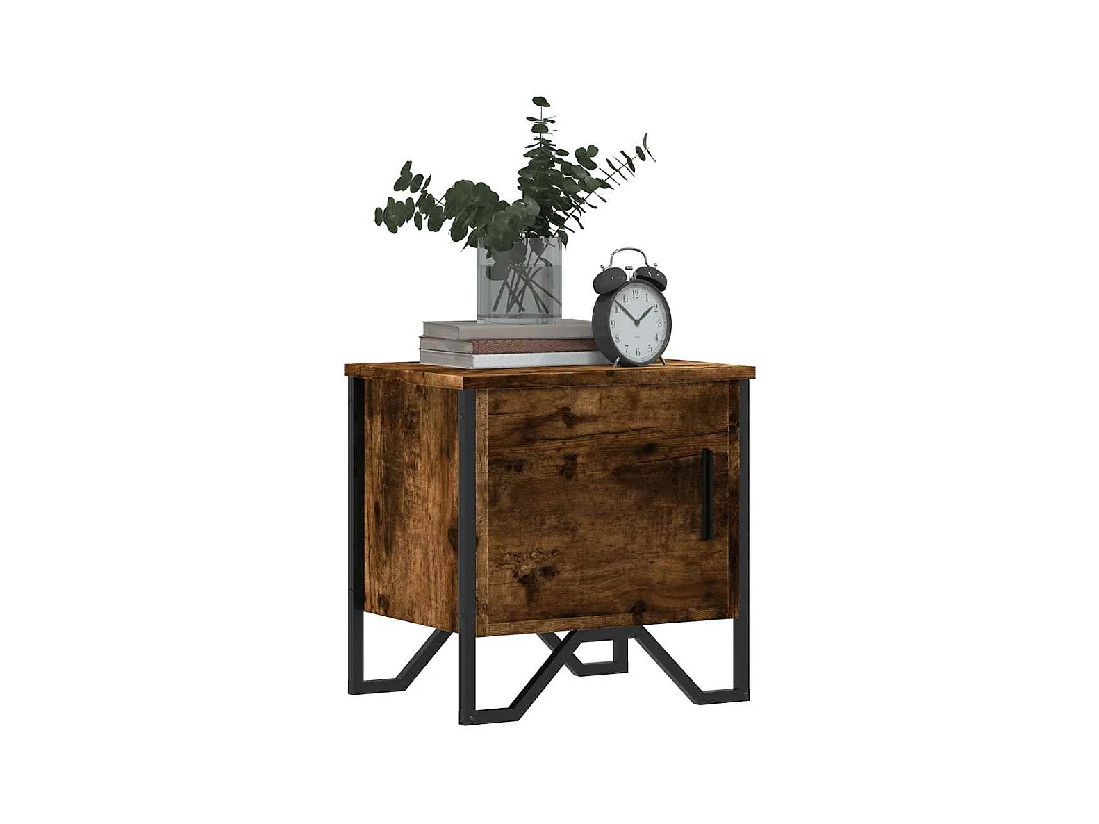 Mesitas de noche | Mesilla de noche 2 uds hierro y madera contrachapada 40x30x55,5 cm