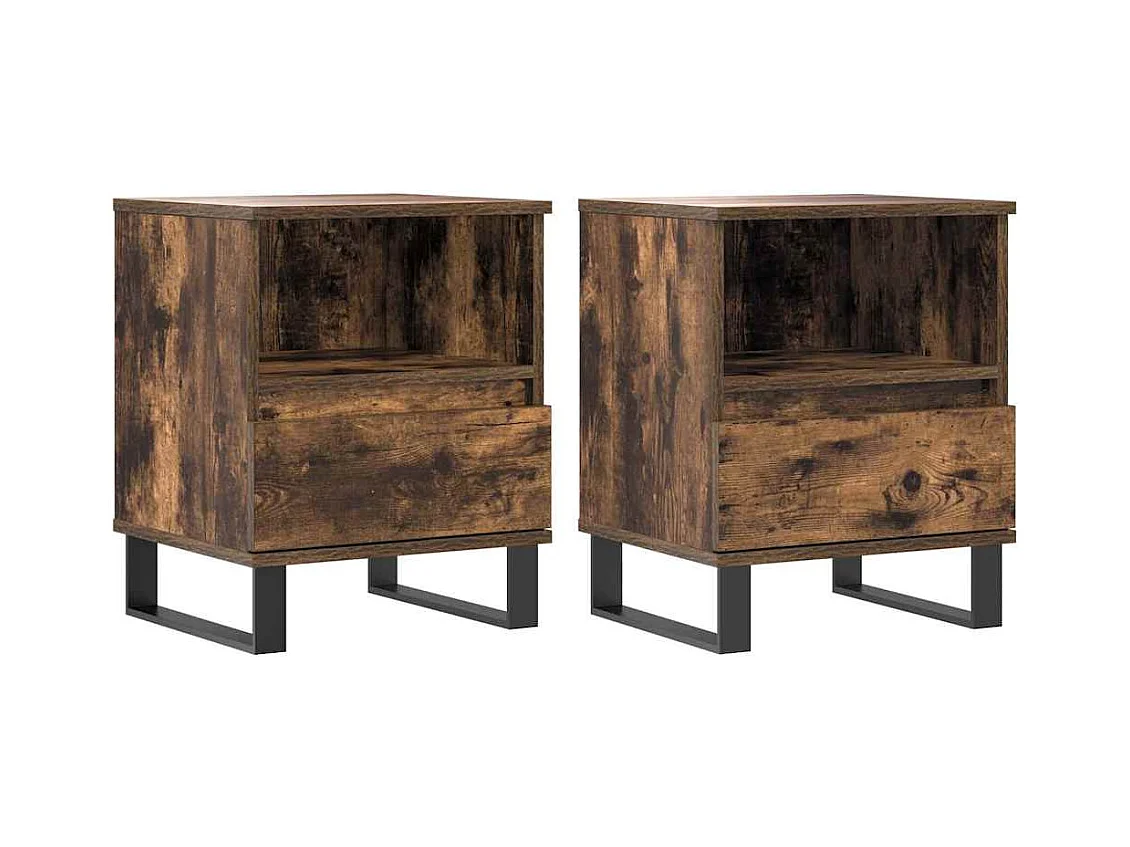 Mesitas de noche | Mesilla de noche 2 uds madera ingeniería roble ahumado 40x35x50 cm