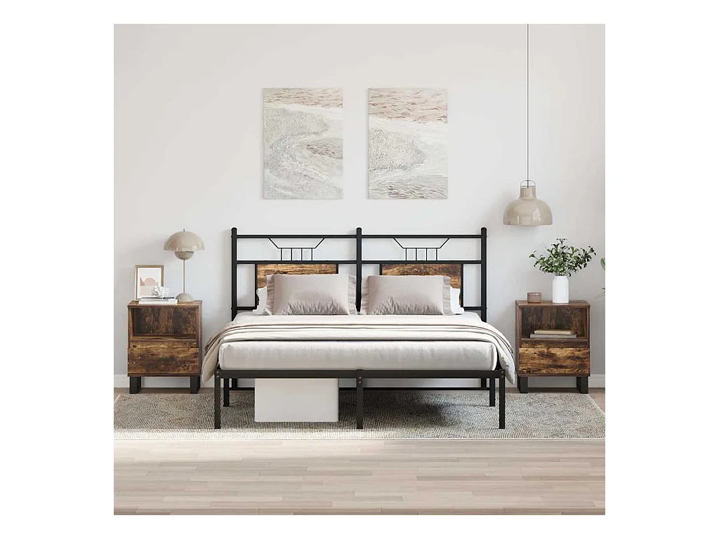Mesita de noche | Mesilla de noche 2 uds. patas de metal roble ahumado 40x35x50 cm