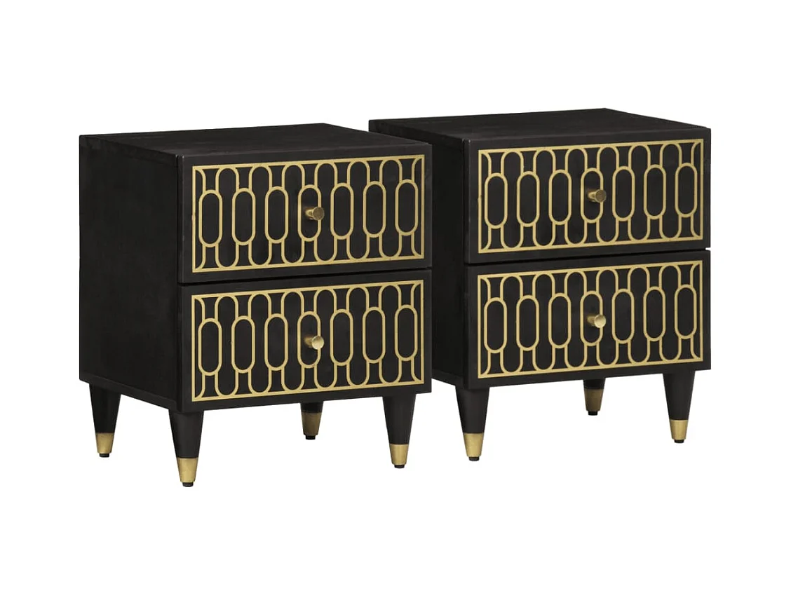 Mesitas de noche | Mesilla de noche 2 uds madera maciza de mango negro 40x33x46 cm