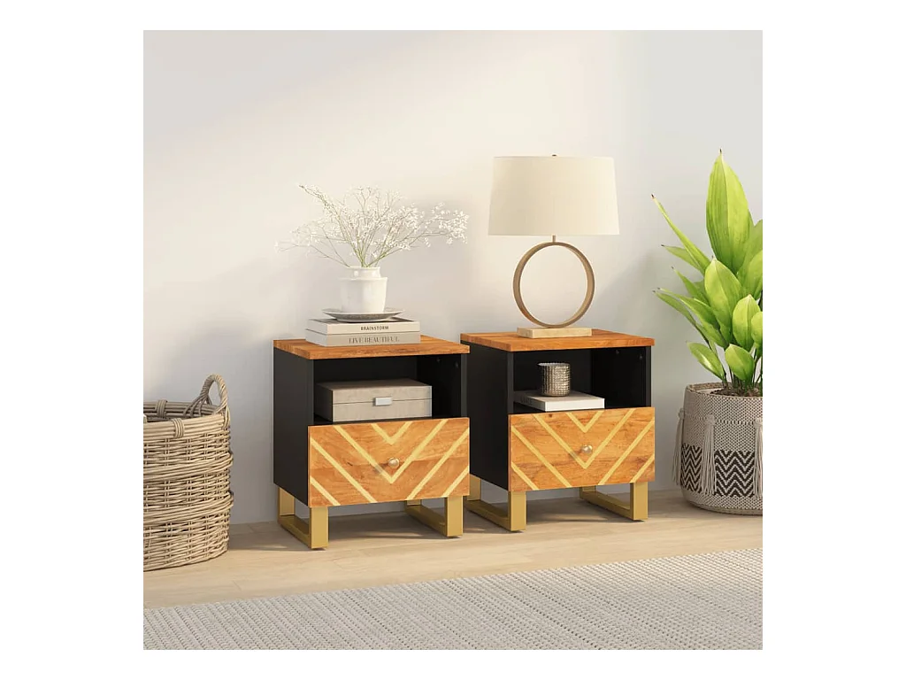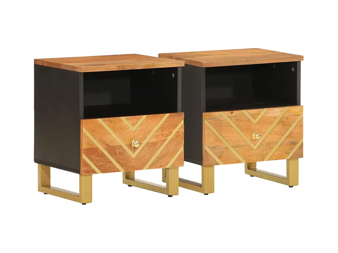 Mesitas de noche | Mesilla de noche 2 uds madera maciza de mango marrón y negro