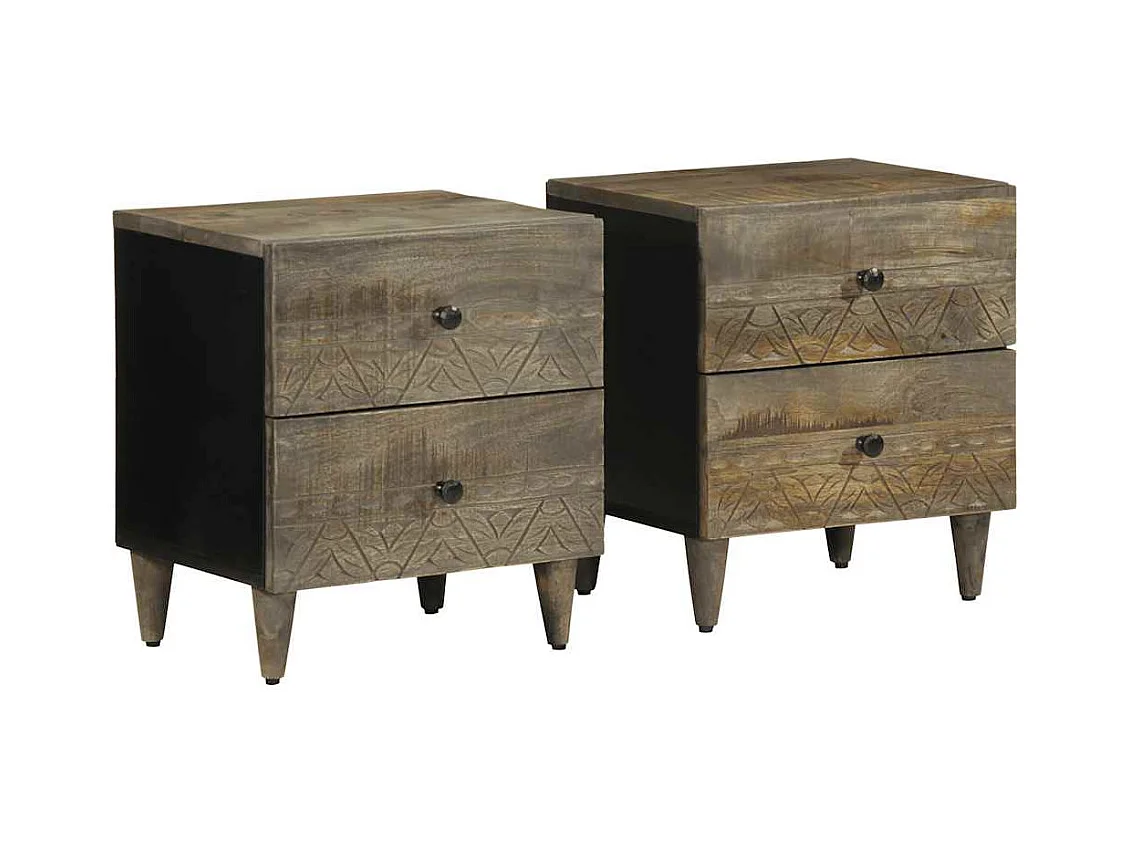 Mesitas de noche | Mesilla de noche 2 uds madera maciza mango gris claro 40x33x46 cm