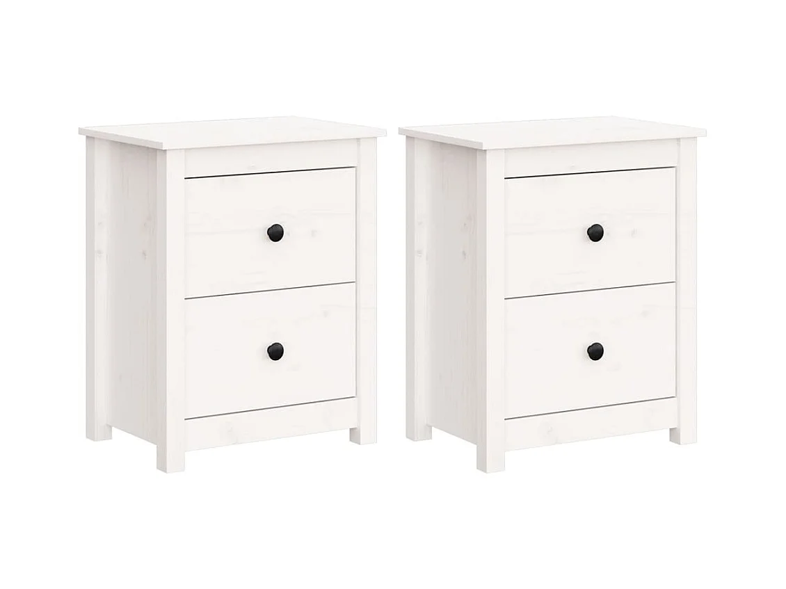 Mesitas de noche | Mesilla de noche 2 uds HAMAR pino macizo blanco 40x35x44,5 cm