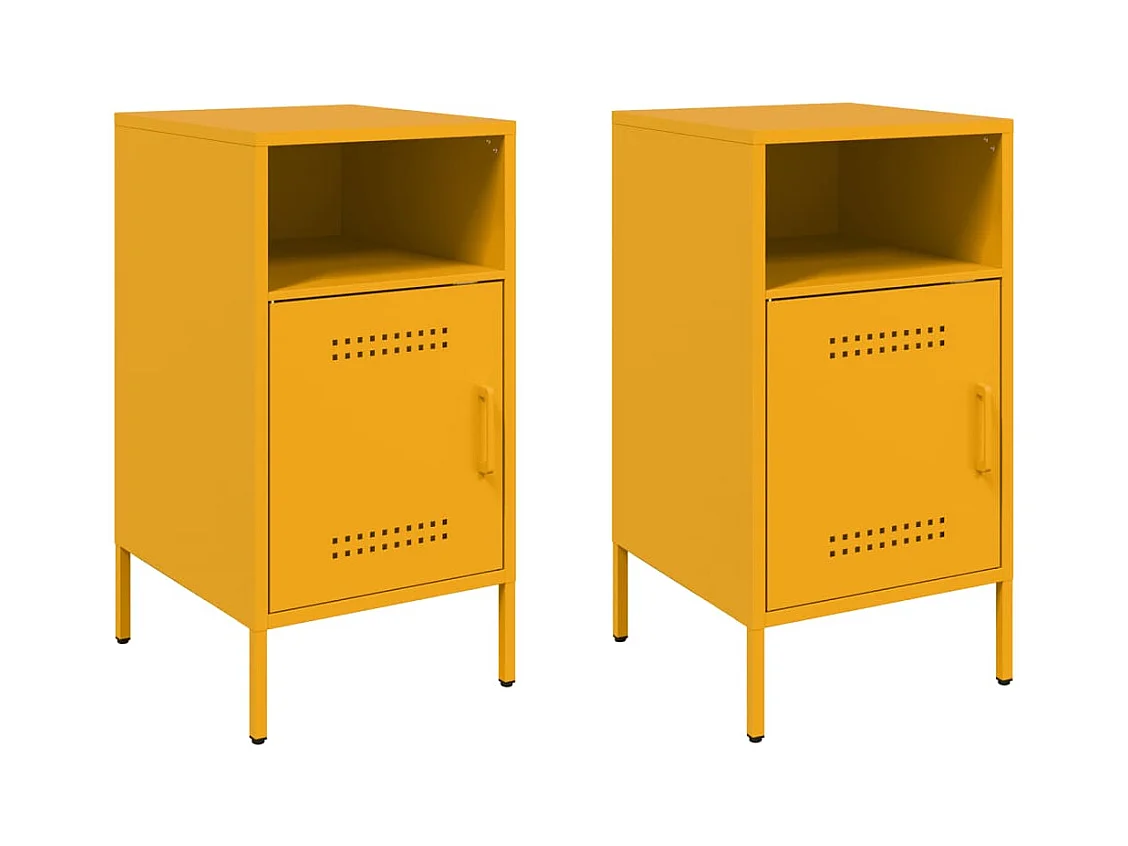 Mesitas de noche | Mesilla de noche 2 unidades acero amarillo mostaza 36x39x68 cm