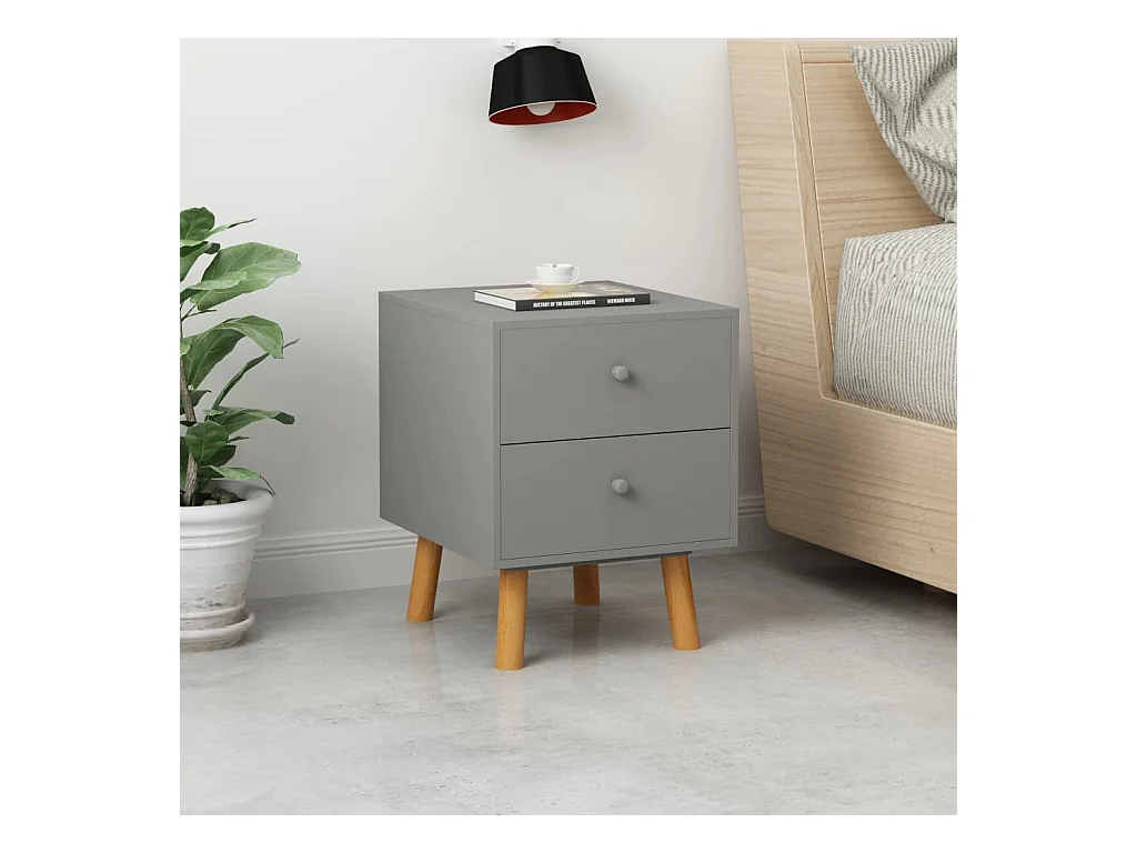 Mesitas de noche | Mesilla de noche 2 uds patas madera gris hormigón 40x30x50 cm