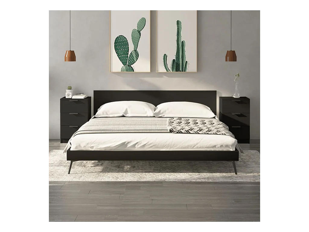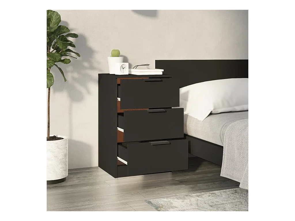 Mesitas de noche | Mesilla de noche 2 uds madera contrachapada color negro