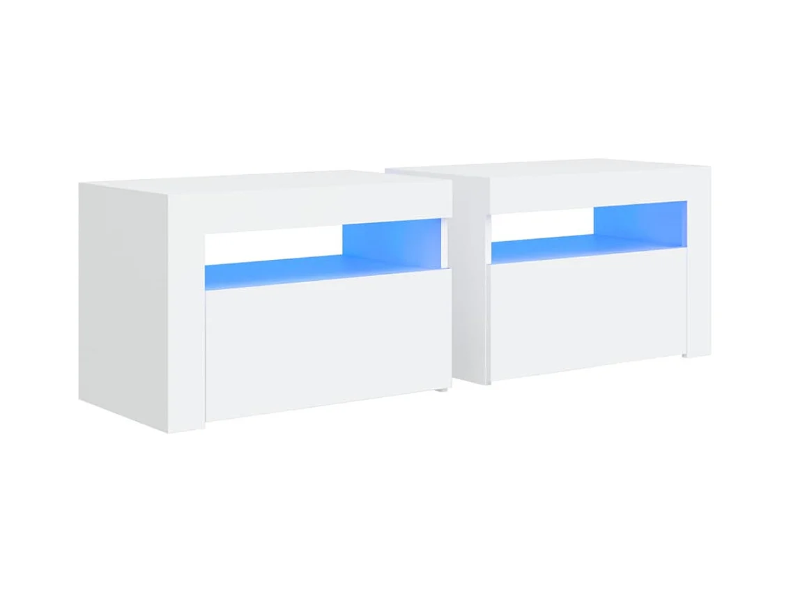 Mesitas de noche | Mesilla de noche con LED 2 unidades blanco 60x35x40 cm