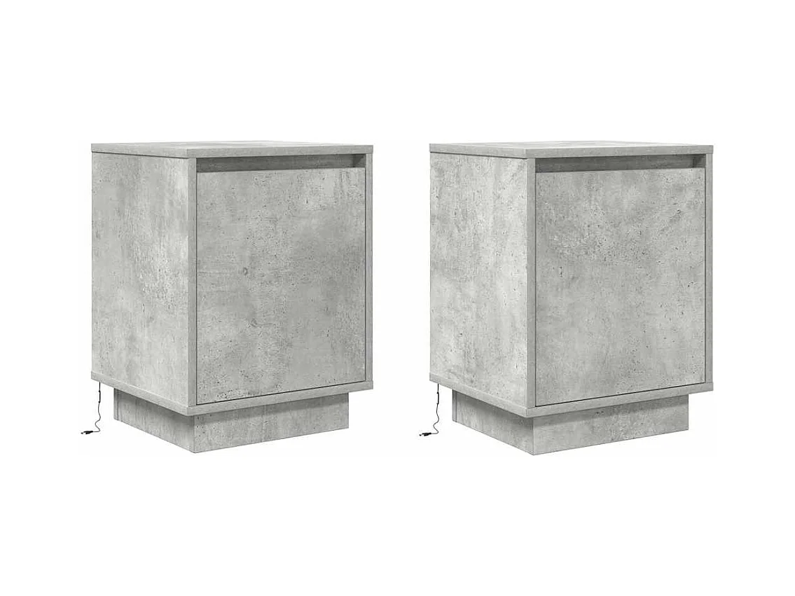 Pack 2 uds Mesitas de noche | Mesilla de noche con luces LED gris hormigón 40x39x48,5cm