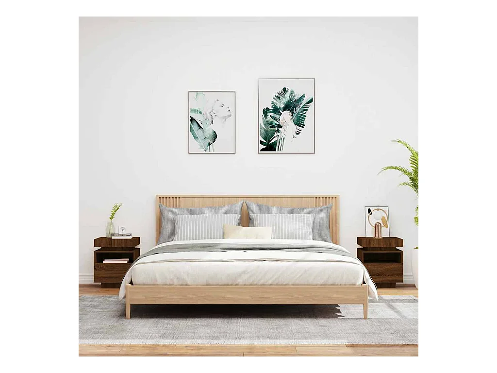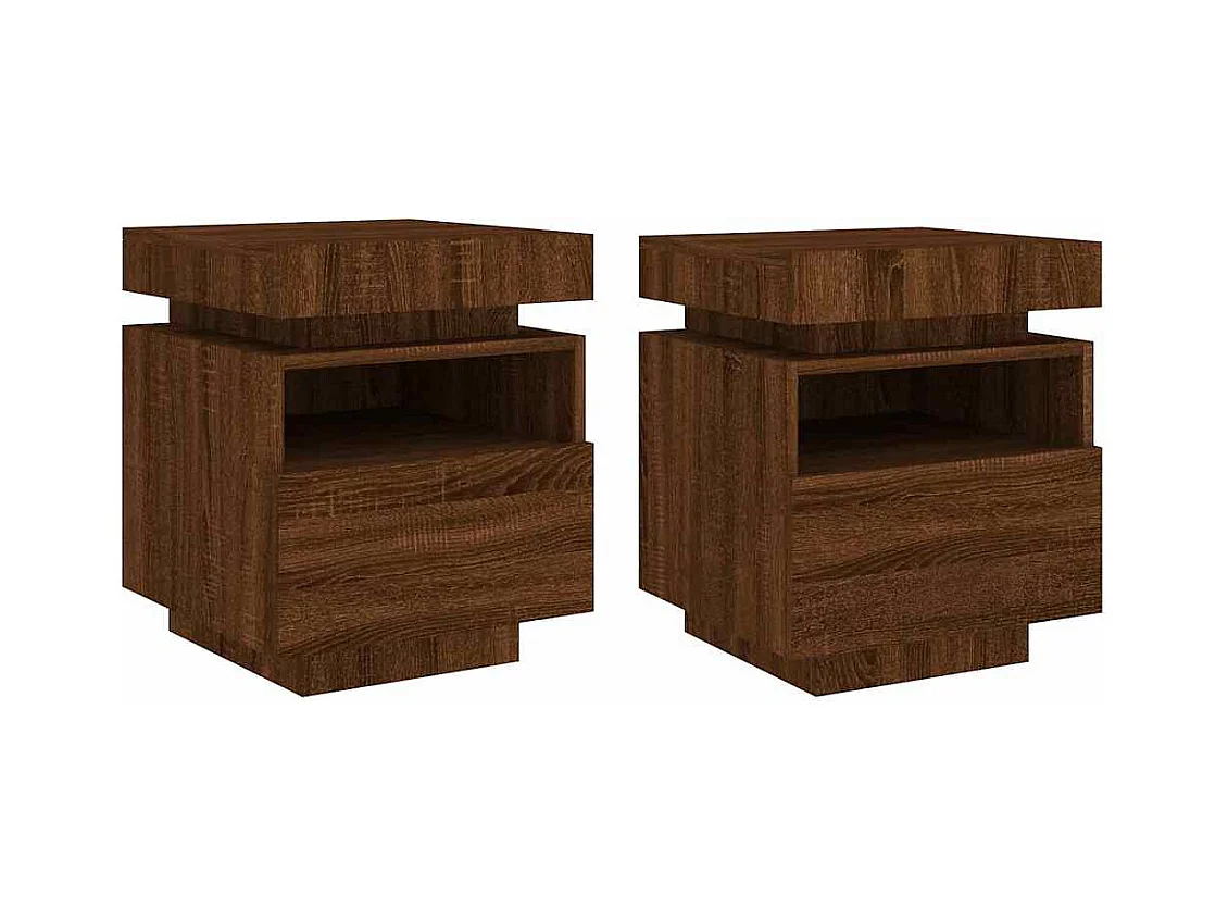 Pack 2 uds Mesitas de noche | Mesilla de noche con luces LED roble marrón 35x39x55 cm