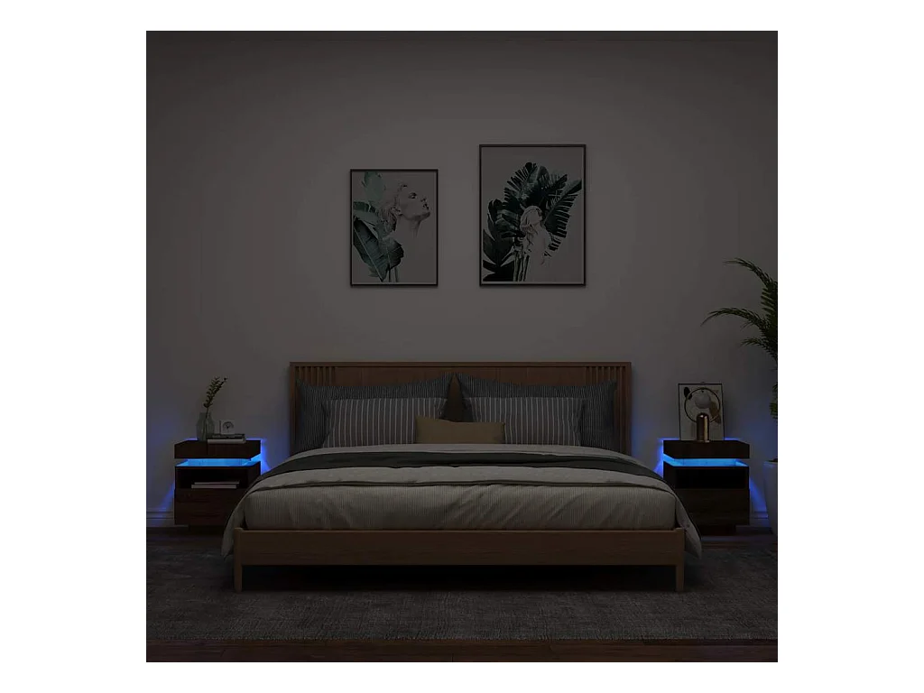 Mesitas de noche | Mesilla de noche con luces LED 2 uds marrón roble 40x39x48,5cm