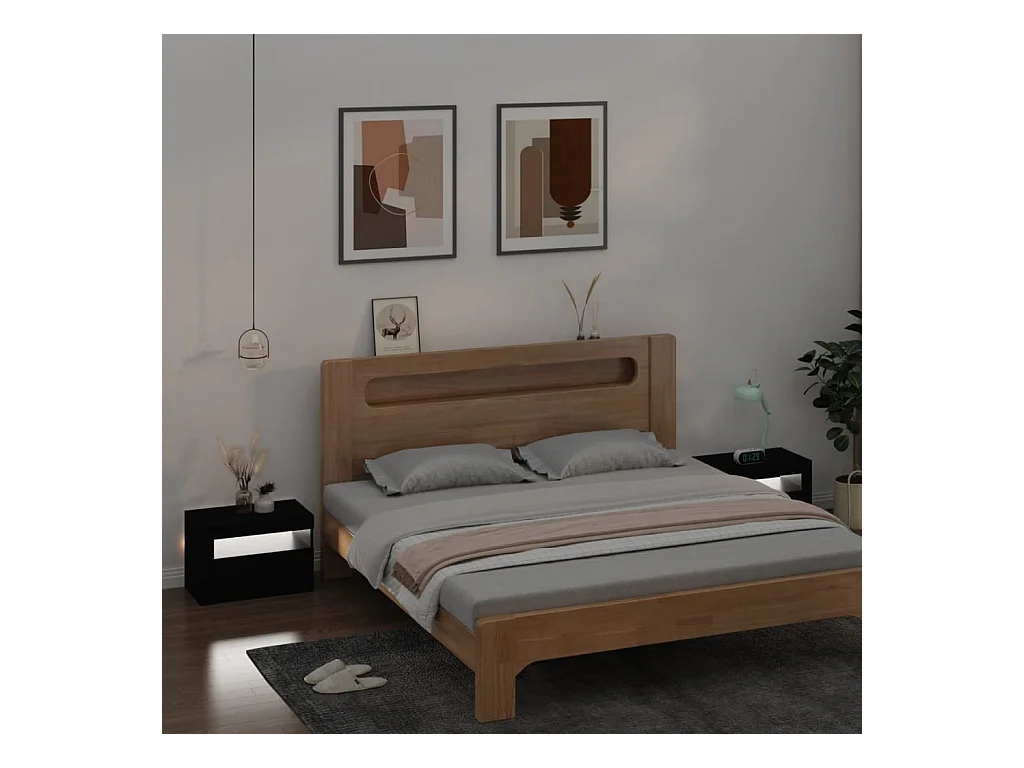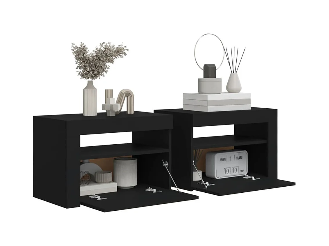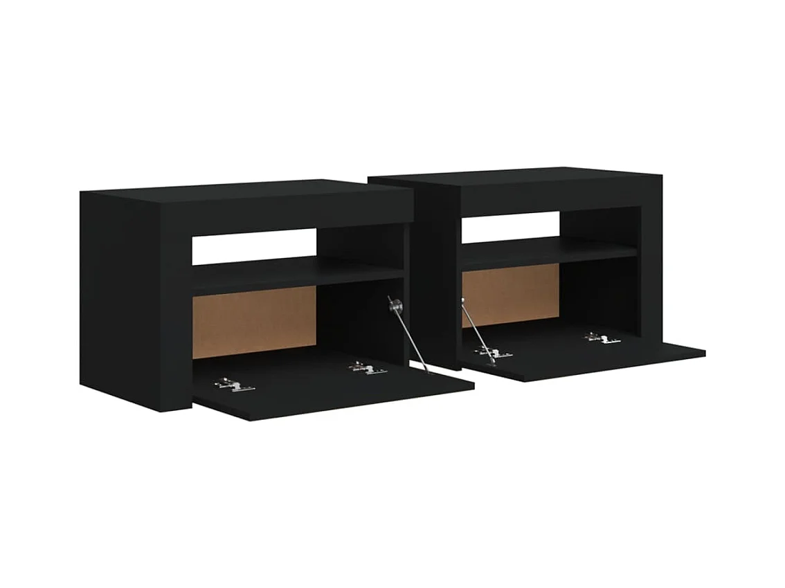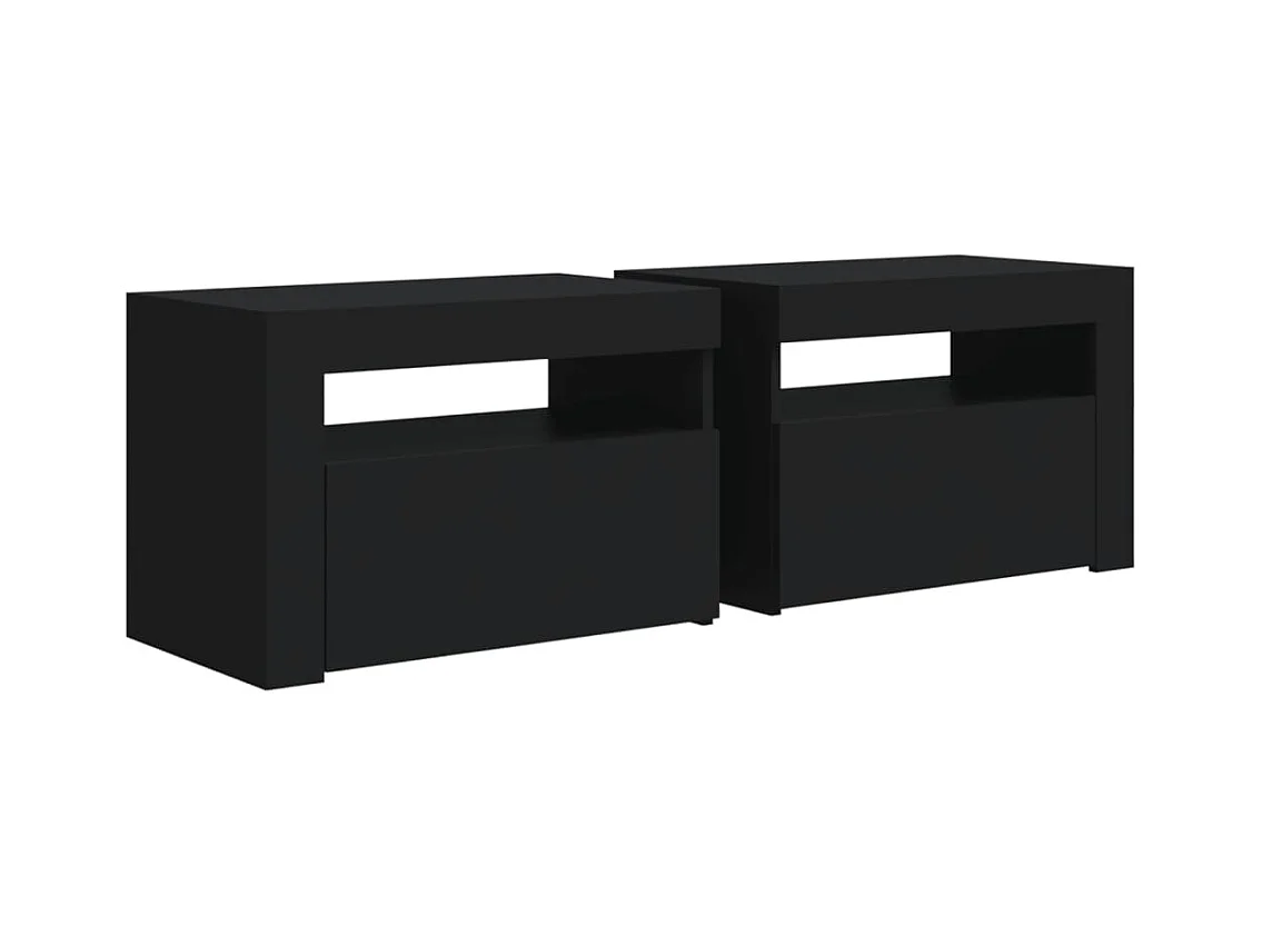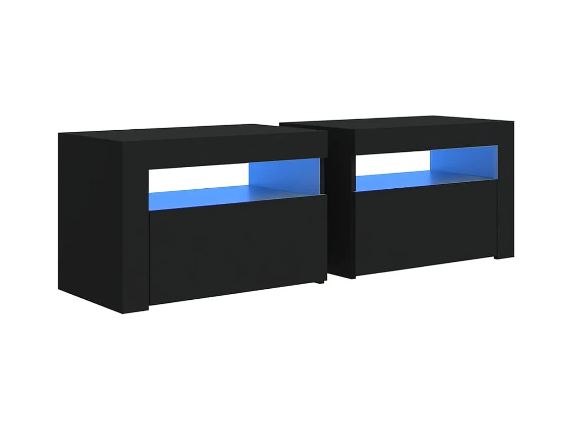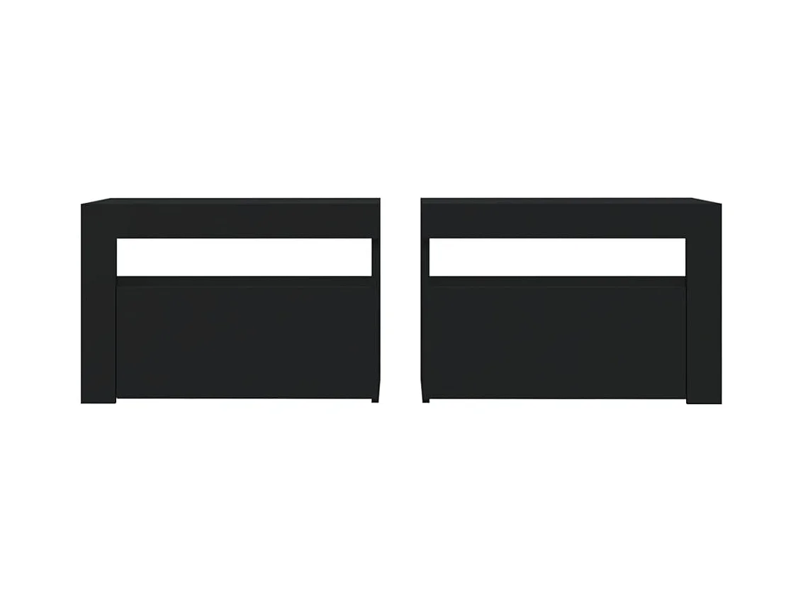 Pack 2 uds Mesitas de noche | Mesilla de noche con luces LED negro 40x39x48,5 cm