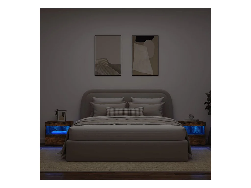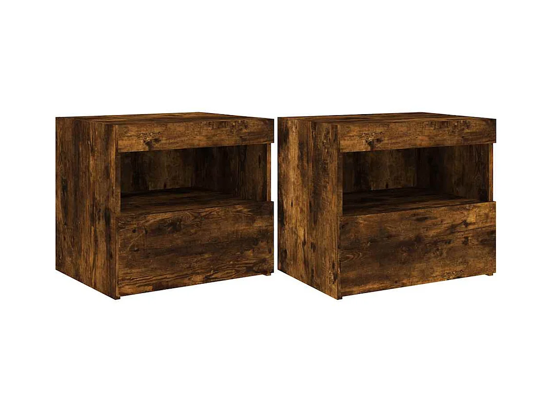 Mesitas de noche | Mesilla de noche con luces LED 2 uds roble ahumado 50x40x45 cm