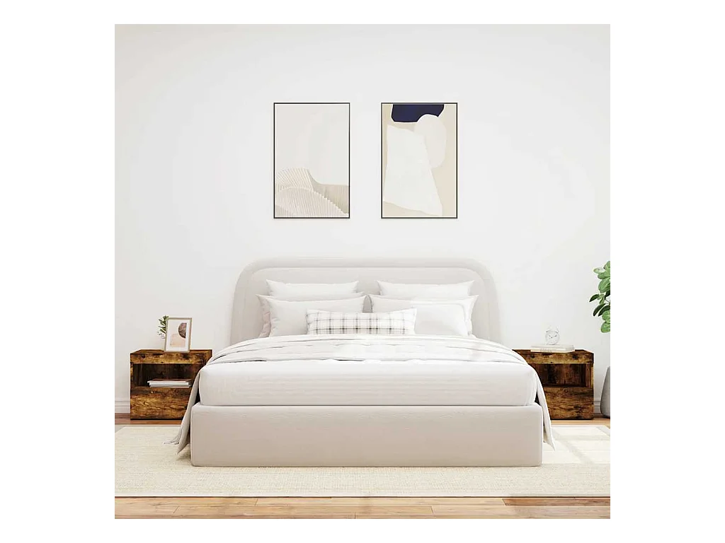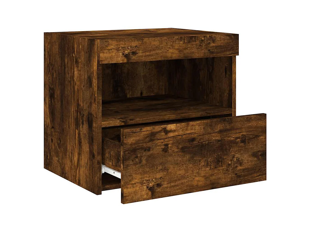 Mesitas de noche | Mesilla de noche de pared con luces LED 2 uds roble ahumado