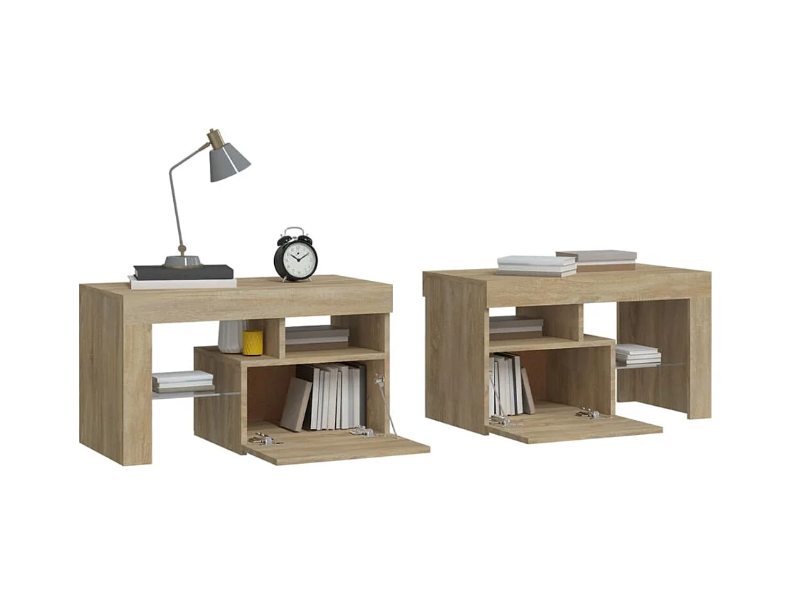 Pack 2 uds Mesitas de noche | Mesilla de noche con luces LED roble Sonoma 35x39x55 cm