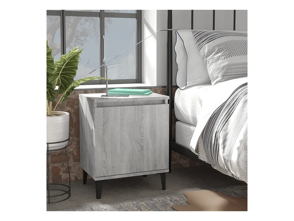 Mesitas de noche | Mesilla de noche con patas de metal gris Sonoma 40x30x50 cm