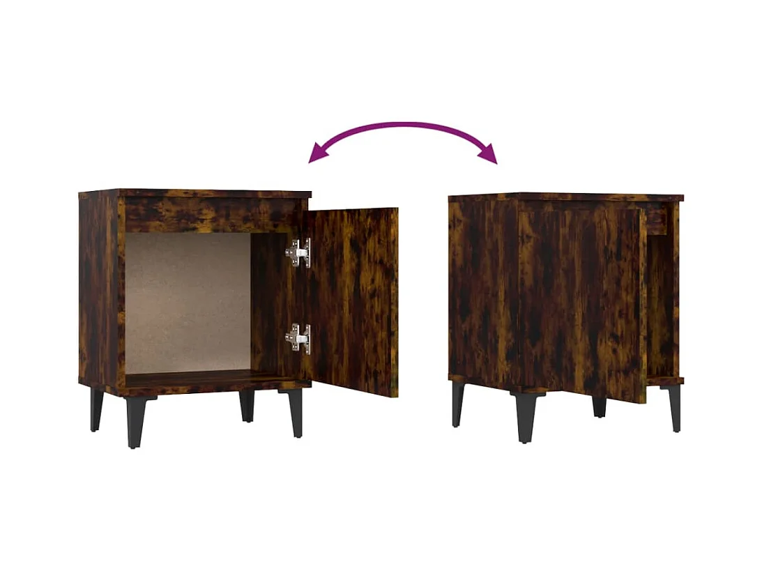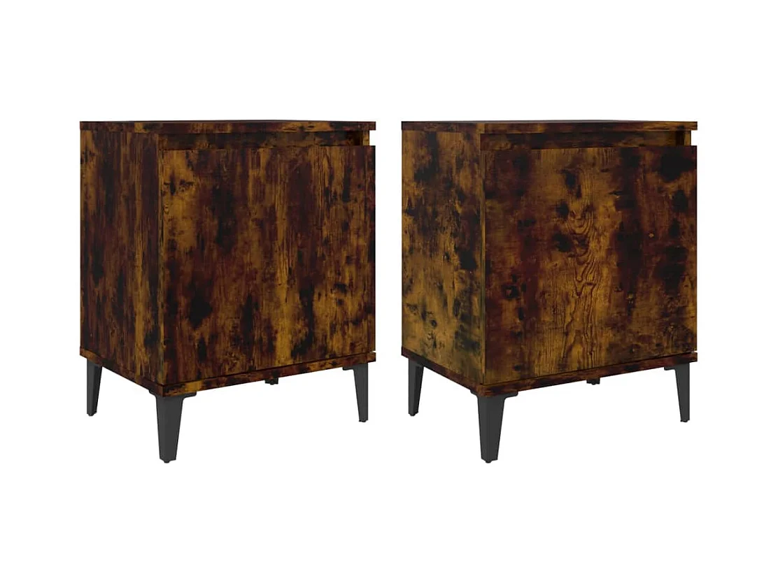 Mesita de noche | Mesilla de noche 2 uds. patas de metal roble ahumado 40x35x50 cm