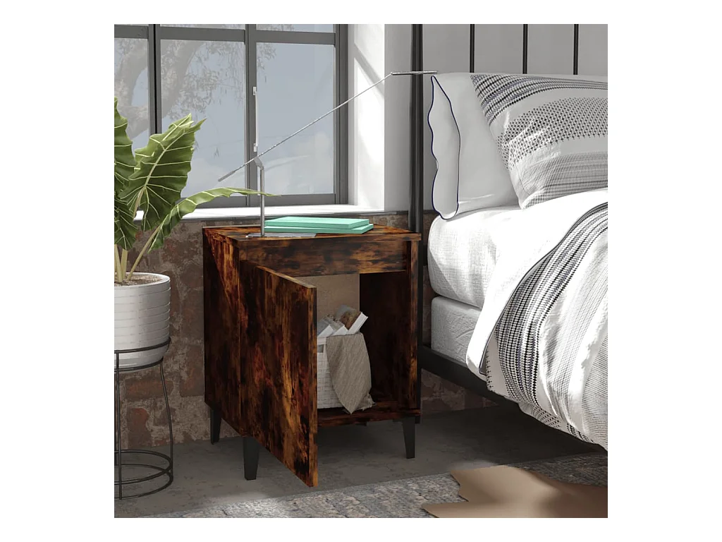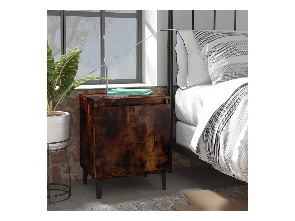 Mesitas de noche | Mesilla de noche con patas de metal roble ahumado 40x30x50 cm