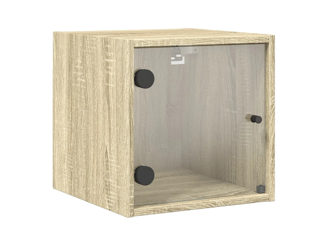 Mesitas de noche | Mesilla de noche con puertas vidrio 2 uds roble Sonoma 35x37x35 cm