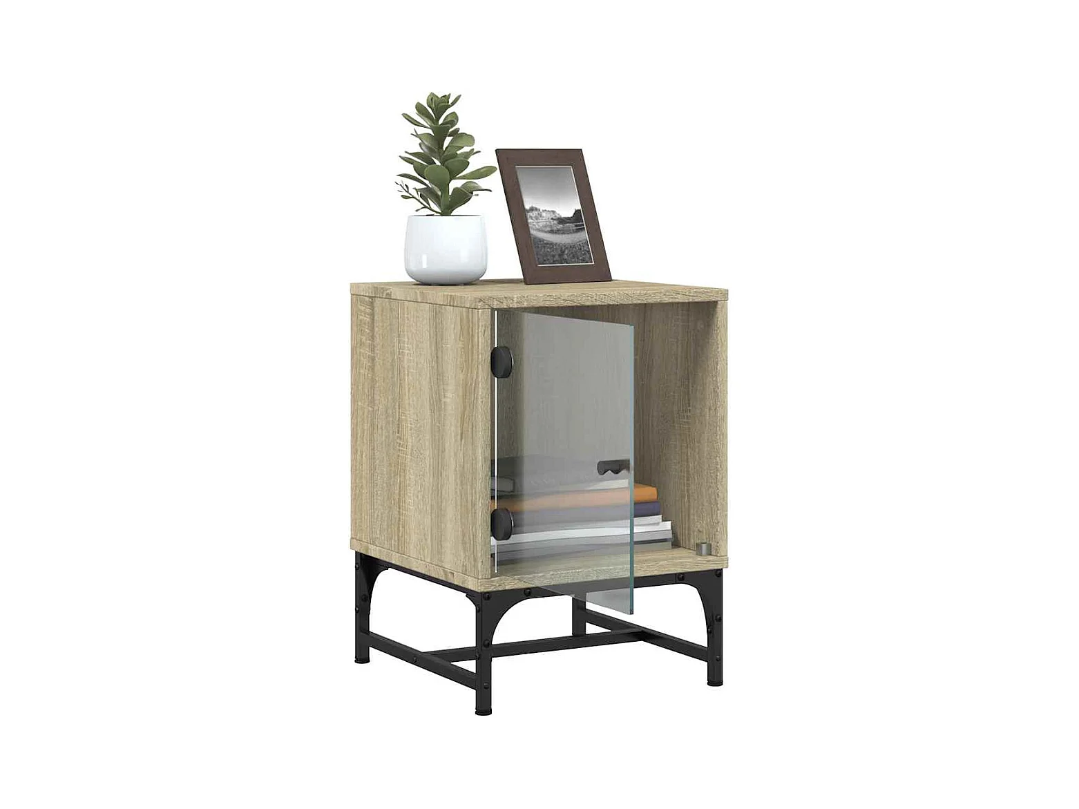 Mesitas de noche | Mesilla de noche con puertas vidrio 2 uds roble Sonoma 35x37x35 cm