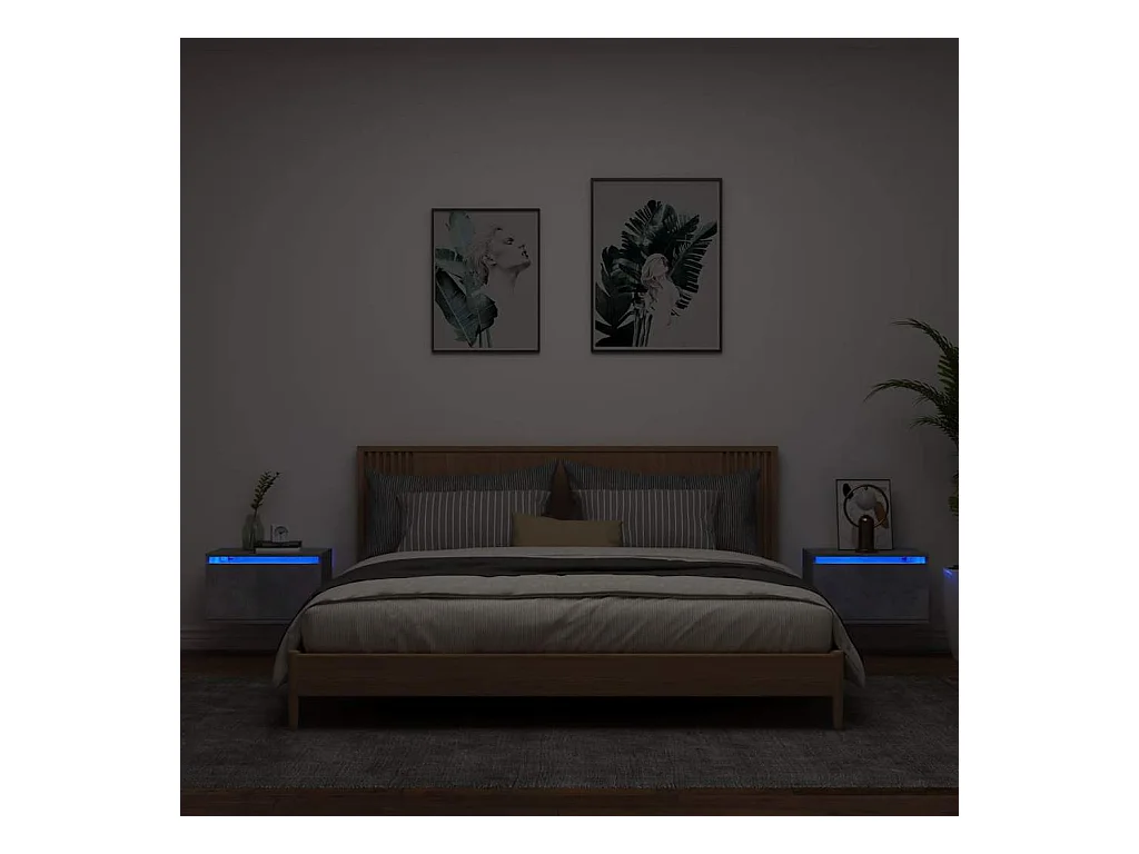 Mesitas de noche | Mesilla de noche de pared con luces LED 2 uds gris hormigón