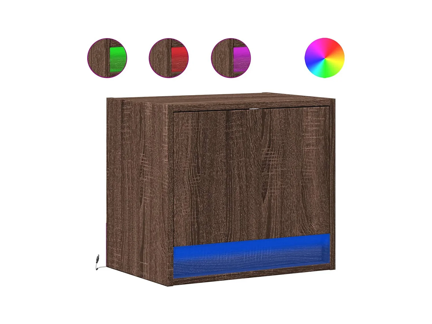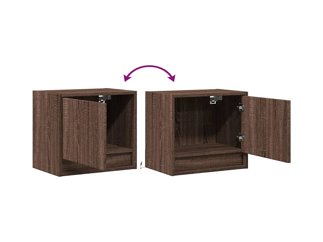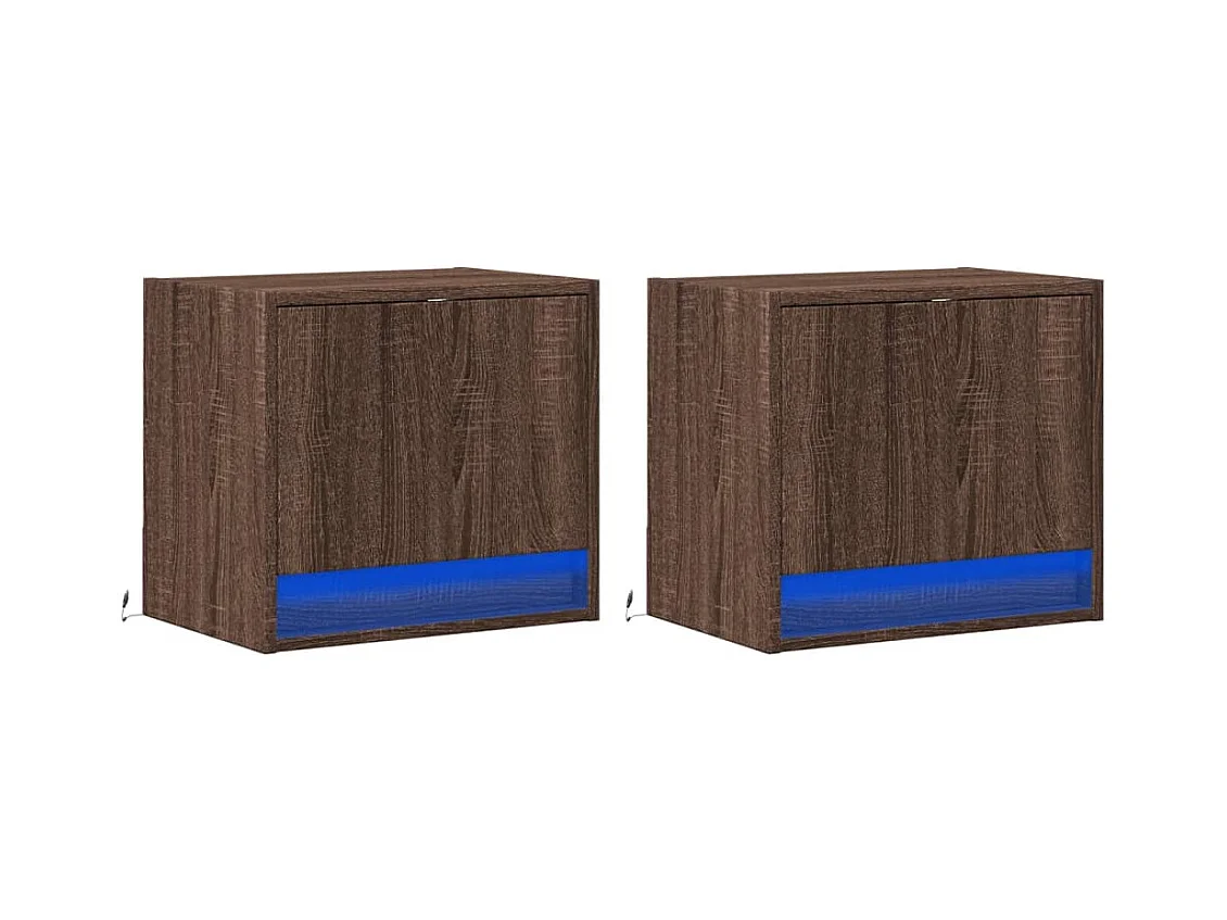 Mesitas de noche | Mesilla de noche de pared con luces LED 2 unidades roble marrón