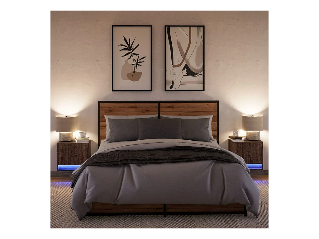 Mesitas de noche | Mesilla de noche de pared con luces LED 2 uds roble ahumado