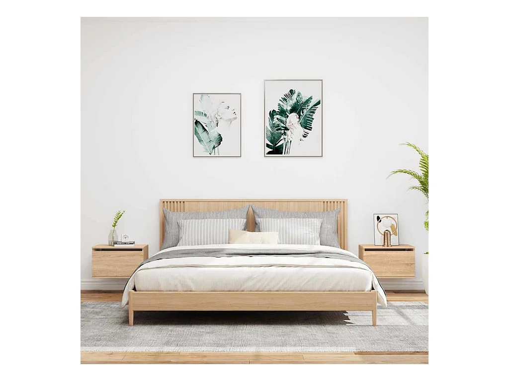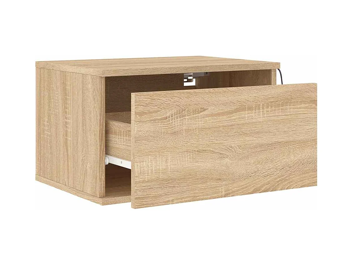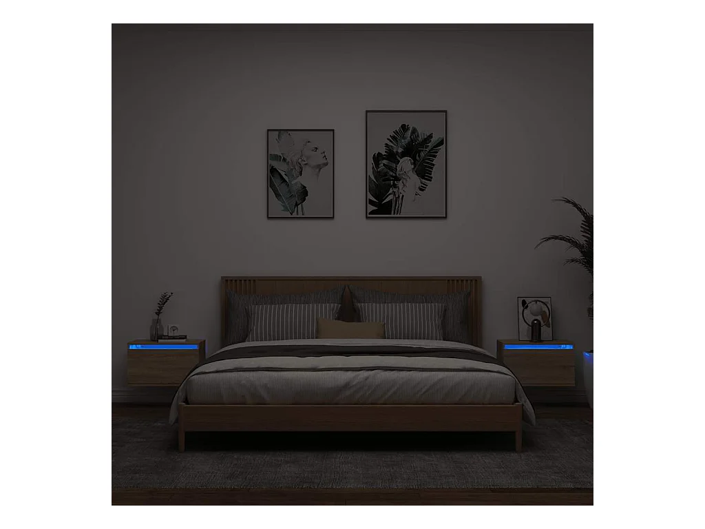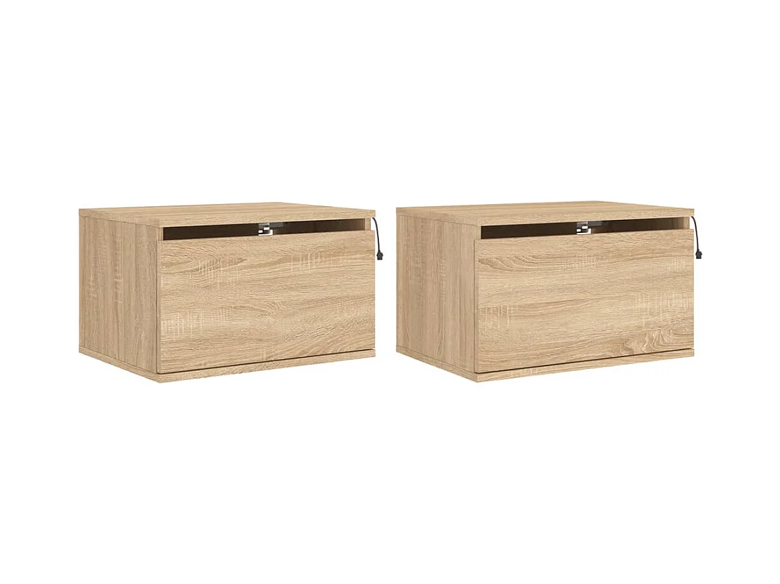 Mesitas de noche | Mesilla de noche de pared con luces LED 2 unidades roble Sonoma