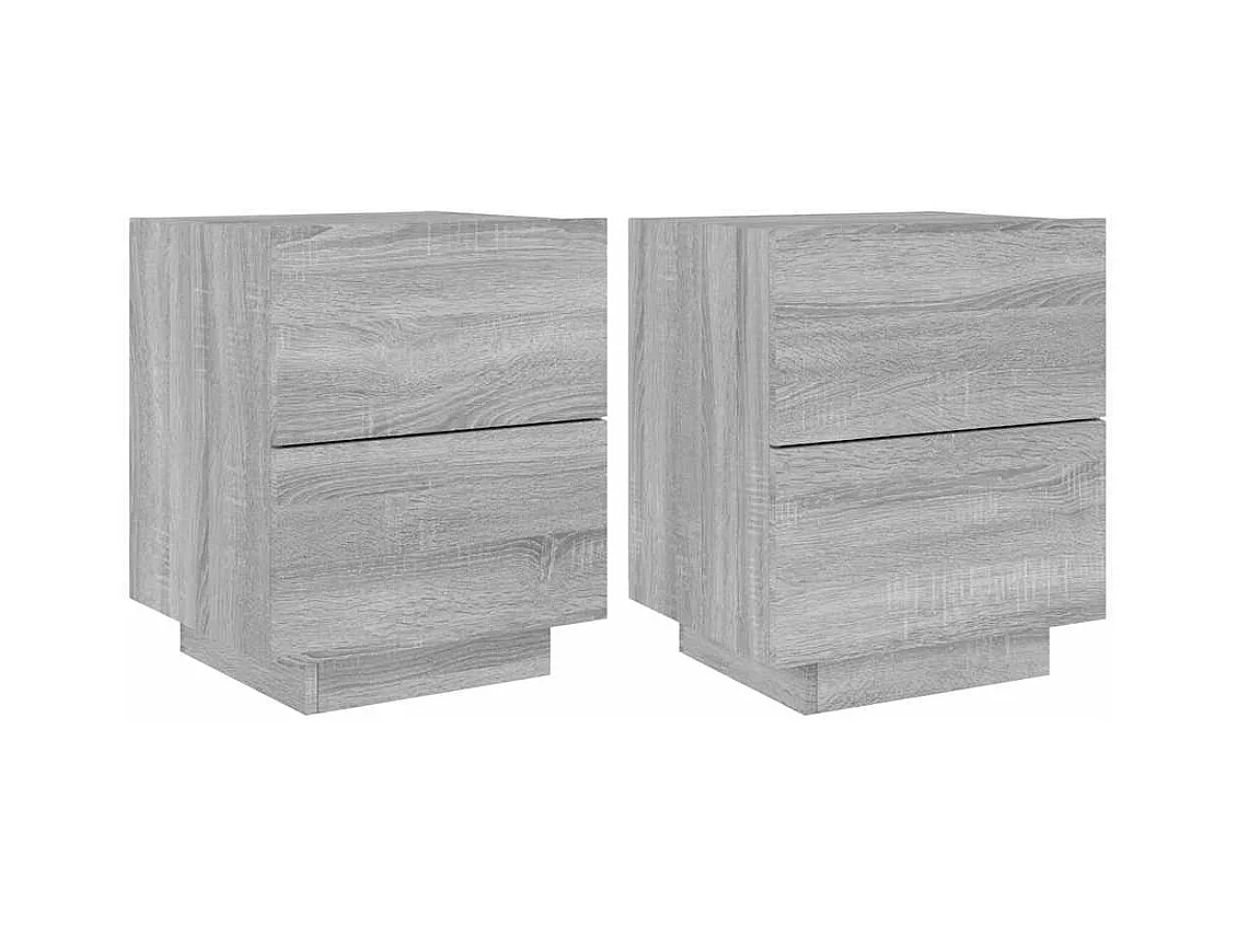 Mesillas de noche | Mesita de noche con luces LED 2 uds gris sonoma 38x34x50 cm